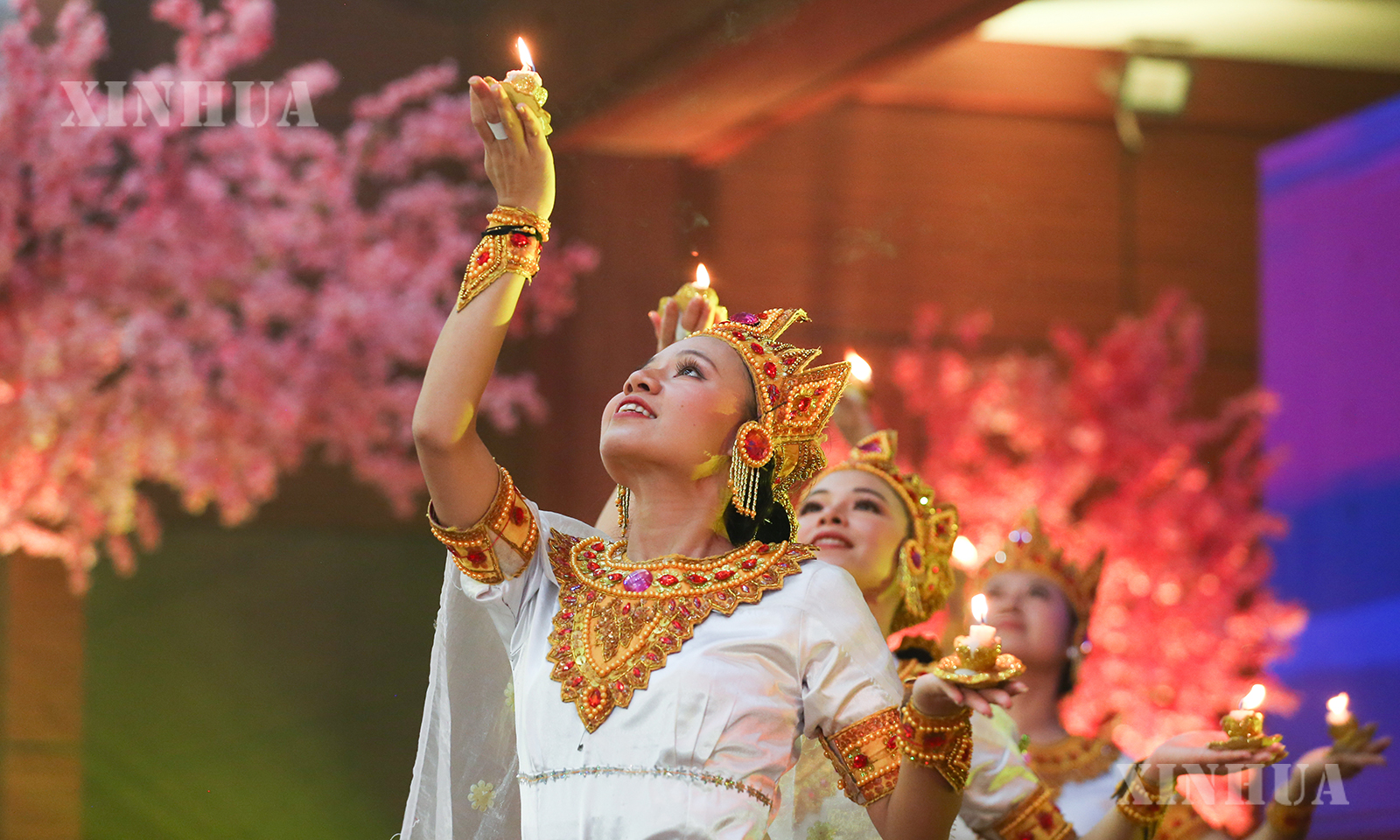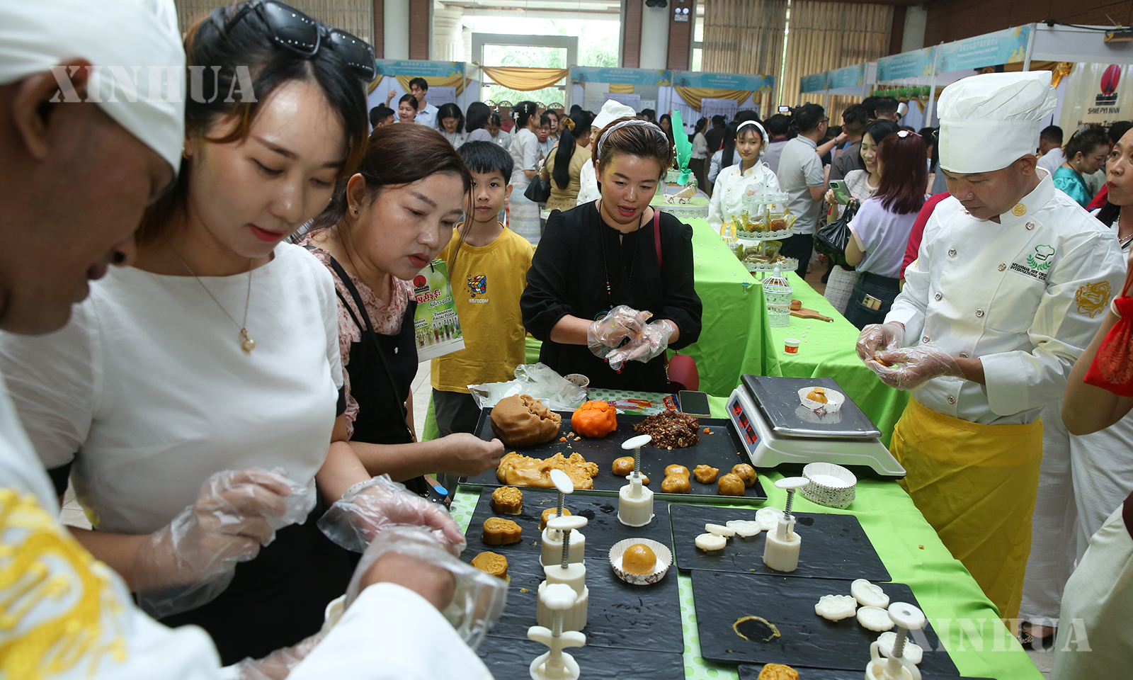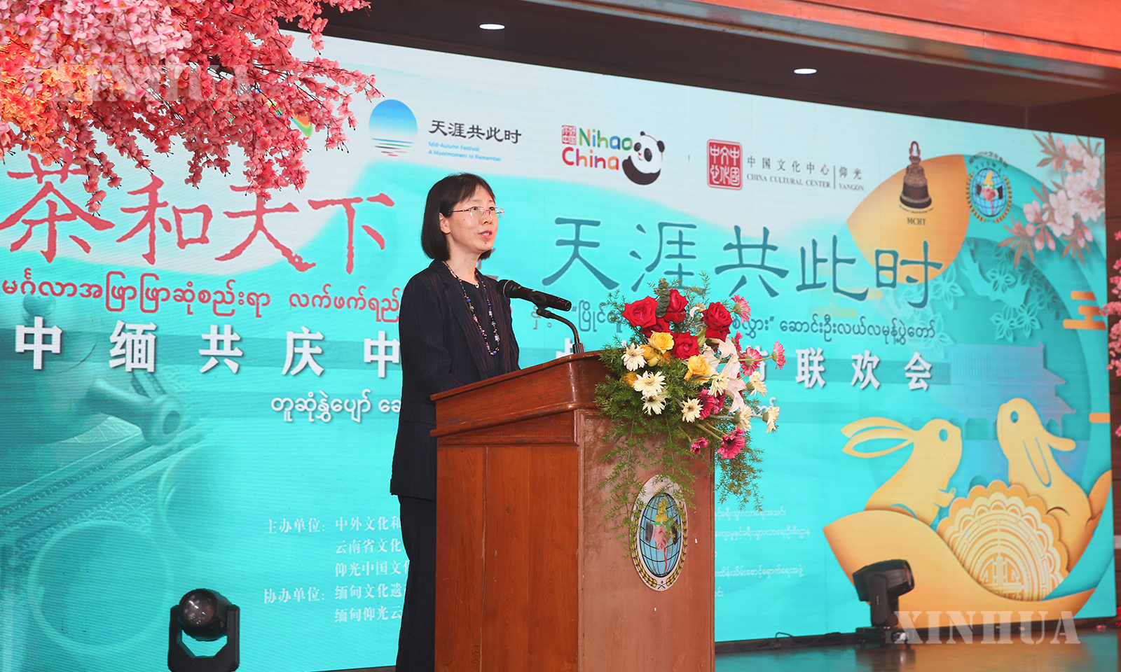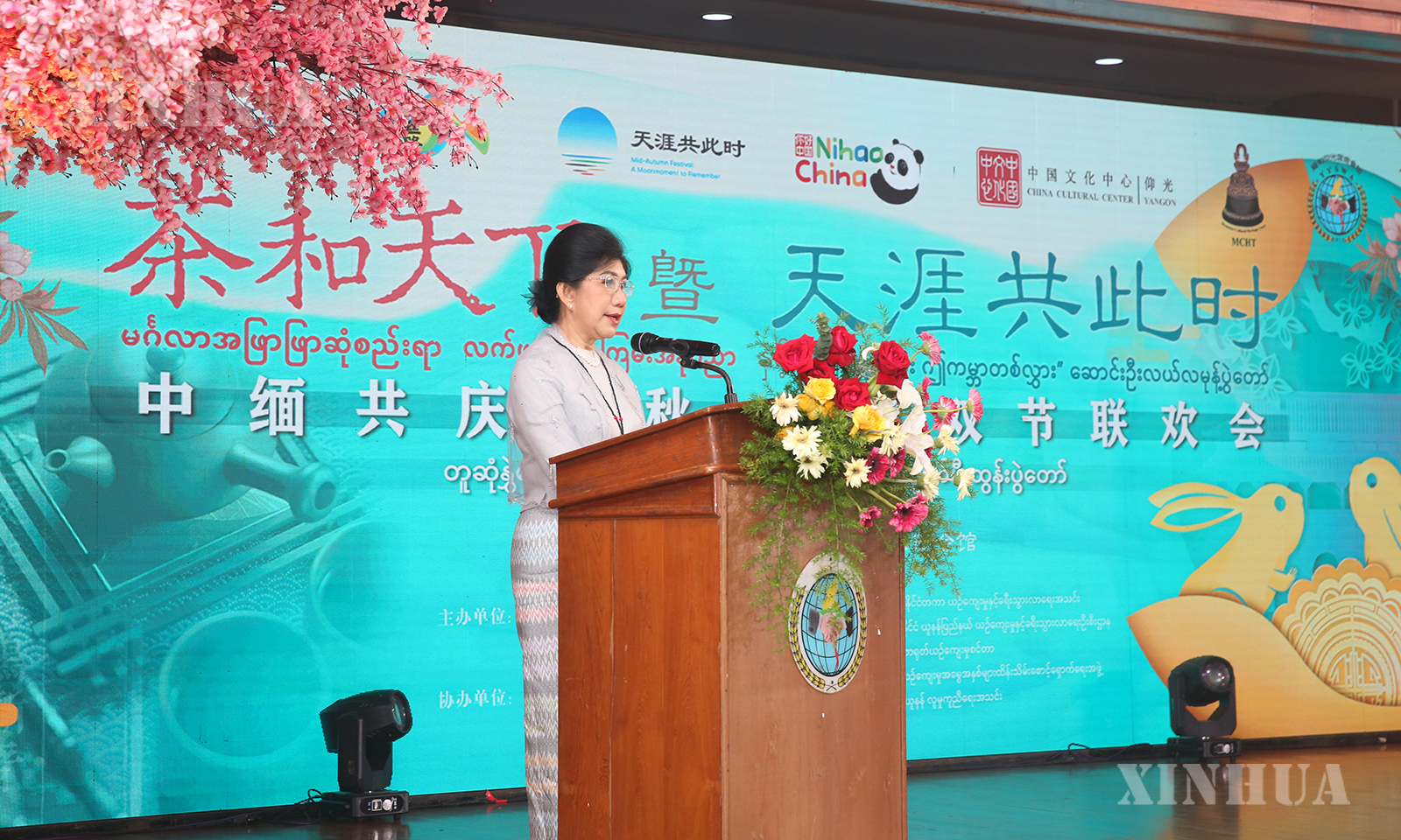 မင်္ဂလာအဖြာဖြာ ဆုံစည်းရာ လက်ဖက်ရည်ကြမ်း အနုပညာနှင့် “ပြိုင်တူခံစား ဤကမ္ဘာတစ်လွှား” ဆောင်းဦးလယ် လမုန့်ပွဲတော် ၊ တူဆုံနွှဲပျော် ဆောင်းဦးလယ်လမုန့်ပွဲနှင့် သီတင်းကျွတ် မီးထွန်းပွဲတော်ကို စက်တင်ဘာ ၃၀ ရက်က မြန်မာနိုင်ငံ ရန်ကုန်မြို့ တွင် ကျင်းပခဲ့ကြောင်းသိရသည်။ (Xinhua)