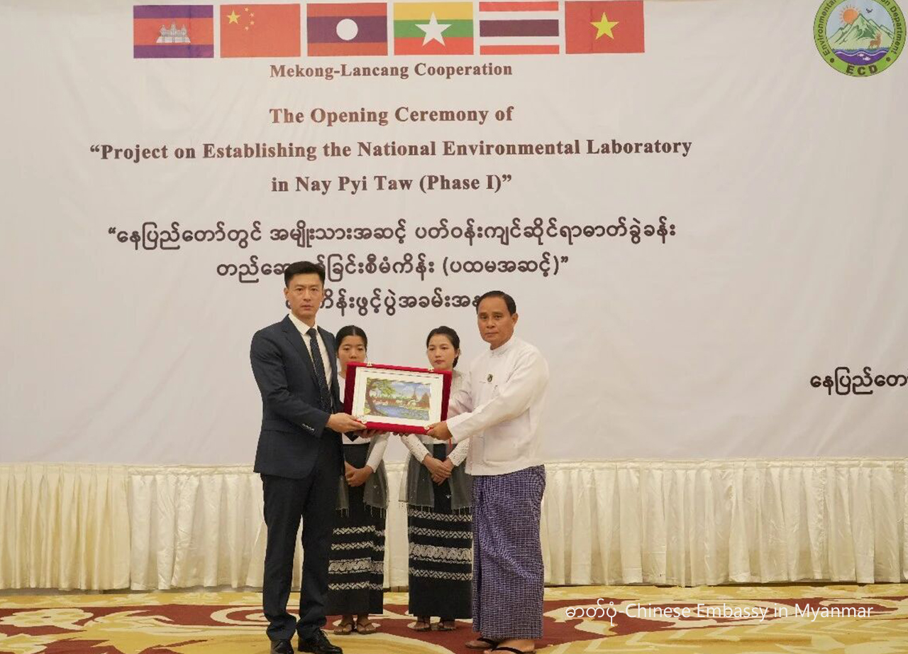 မြန်မာနိုင်ငံ နေပြည်တော်တွင် ၂၀၂၆ ခုနှစ် ဧပြီ ၂၄ ရက်က ကျင်းပသော လန်ချန်း-မဲခေါင် ပူးပေါင်းဆောင်ရွက်မှု အထူးရန်ပုံငွေဖြင့် ကူညီထောက်ပံ့သည့် “အမျိုးသားအဆင့် ပတ်ဝန်းကျင်ဆိုင်ရာဓာတ်ခွဲခန်း တည်ဆောက်ခြင်း စီမံကိန်း (ပထမအဆင့်)” စီမံကိန်းဖွင့်ပွဲ အခမ်းအနားမြင်ကွင်းကို တွေ့ရစဉ် (ဓာတ်ပုံ – Chinese Embassy in Myanmar)
