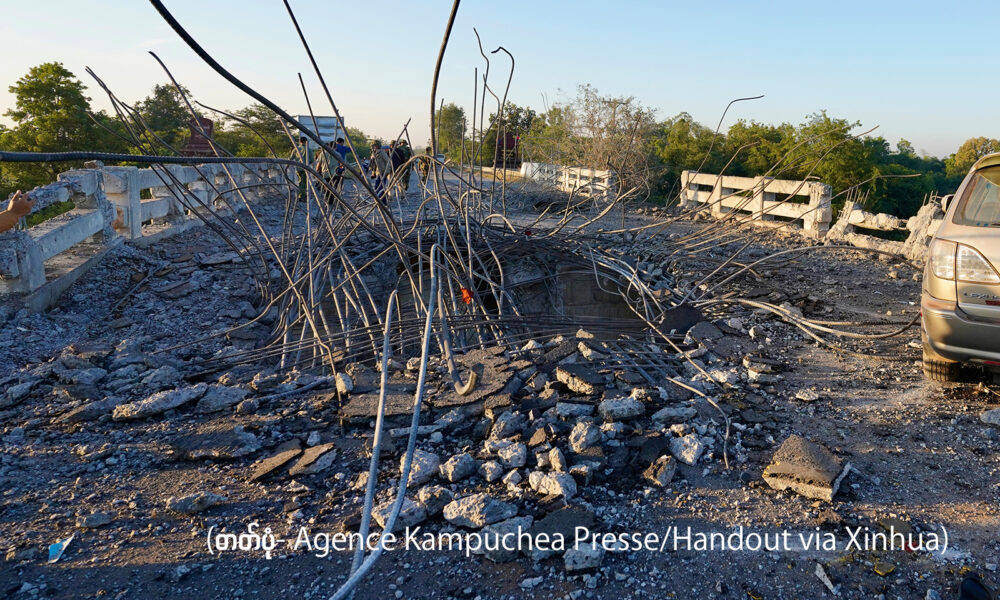 ဖနွမ်းပင်၊ ဒီဇင်ဘာ ၂၁ ရက် (ဆင်ဟွာ) ထိုင်းစစ်တပ်သည် F-16 တိုက်လေယာဉ် စေလွှတ်ကာ ကမ္ဘောဒီးယားရှိ ကွန်ကရစ်တံတားတစ်စင်းကို ဗုံးကြဲဖျက်ဆီးခဲ့ကြောင်း ကမ္ဘောဒီးယား ကာကွယ်ရေးဝန်ကြီးဌာန ပြောရေးဆိုခွင့်ရှိသူ Maly Socheata က ဒီဇင်ဘာ ၂၀...
