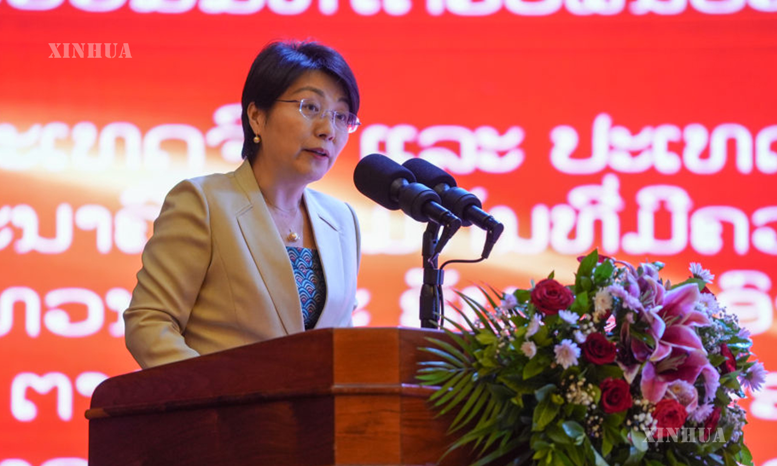 3. 11月25日,中国驻老挝大使方虹出席活动并致辞。新华社记者 马淮钊摄