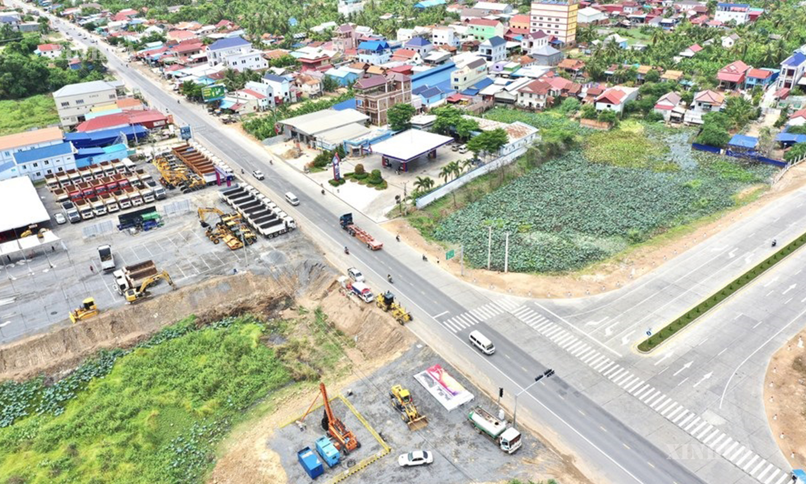 ကမ္ဘောဒီးယားနိုင်ငံ ကန်ဒယ်ပြည်နယ်ရှိ နိုင်ငံ၏ ဒုတိယမြောက် တရုတ်နိုင်ငံကရင်းနှီးမြှုပ်နှံသည့် အဝေးပြေးလမ်းဖြစ်သည့် Phnom Penh-Bavet အဝေးပြေးလမ်းဆောက်လုပ်ရေးစီမံကိန်းကို ၂၀၂၃ ခုနှစ် ဇွန် ၅ရက်ကတွေ့ရစဥ် (ဆင်ဟွာ)