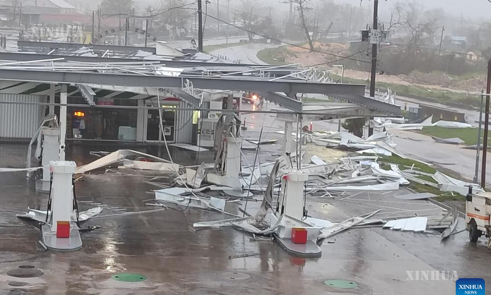 This photo taken on Oct. 28, 2025 shows a gas station damaged by the Hurricane Melissa in Montego Bay, Jamaica. (Jamaica Observer/Handout via Xinhua)