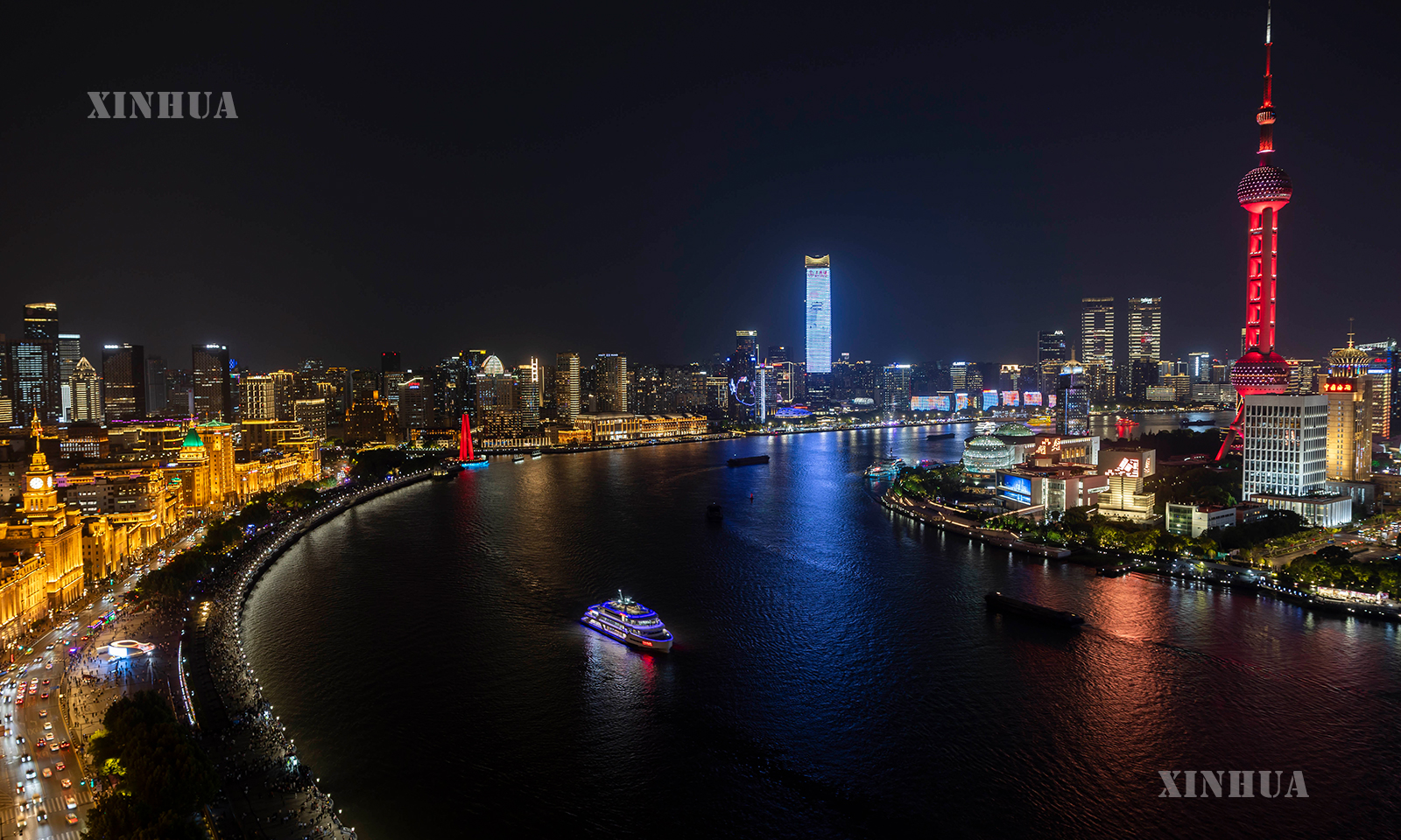 图说2:4月30日拍摄的陆家嘴、外滩、北外滩夜景。新华社记者 王翔 摄