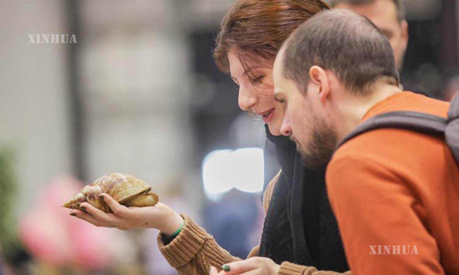 4. 12月14日,在俄罗斯圣彼得堡,参观者在“2025宠物秀”上观察巨型蜗牛。新华社发(莫京娜摄)