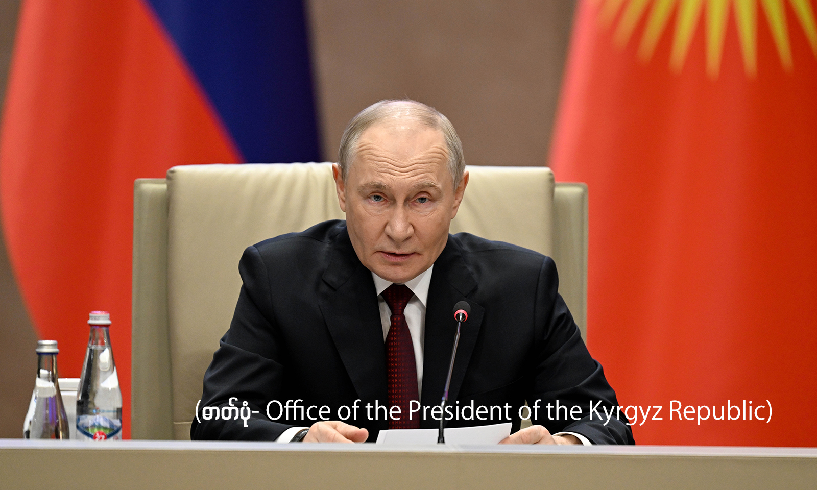 图说:11月27日,在吉尔吉斯斯坦比什凯克,俄罗斯总统普京在集安组织集体安全理事会会议上发言。新华社发(吉尔吉斯斯坦总统办公厅供图)