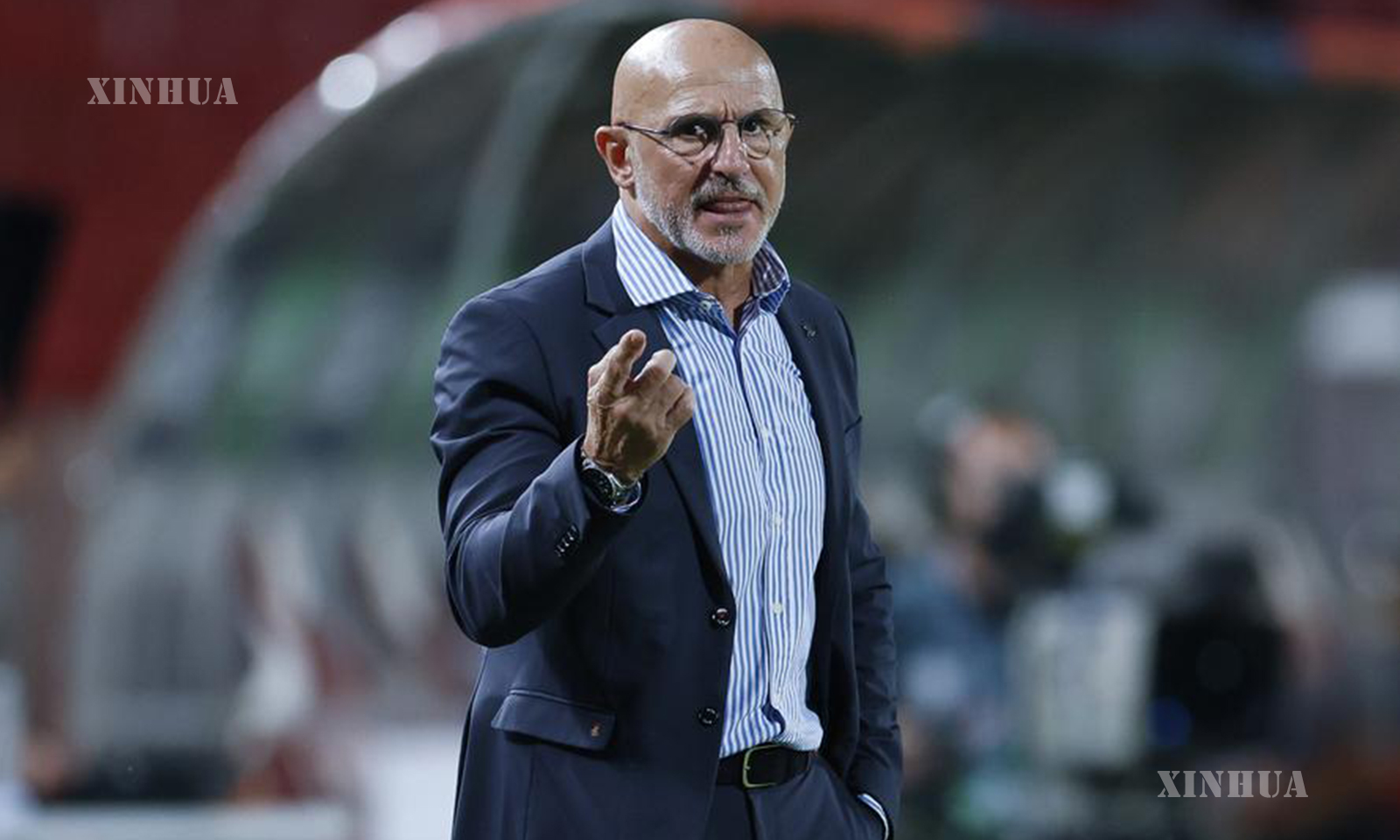 Spain’s head coach Luis de la Fuente gestures during UEFA Nations League 2024/25 match between Serbia and Spain in Belgrade, Serbia, Sept. 5, 2024. (Photo by Predrag Milosavljevic/Xinhua)