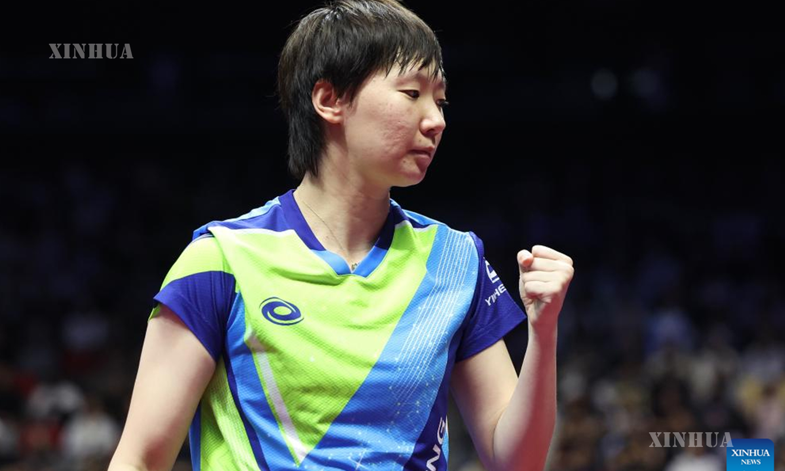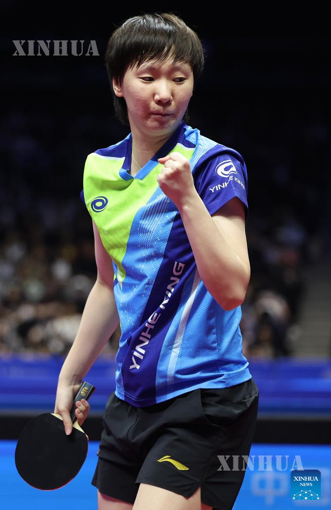 တရုတ်နိုင်ငံ တောင်ပိုင်း မကာအိုအထူးအုပ်ချုပ်ခွင့်ရဒေသတွင် တရုတ်နိုင်ငံ၏ ၁၅ ကြိမ်မြောက် အမျိုးသားအားကစားပြိုင်ပွဲ၌ ဟေးလုံကျန်းပြည်နယ်မှ ဝမ်မန့်ယွိနှင့် ဟဲပေပြည်နယ်မှ စွန်းရင်ဆားတို့၏ စားပွဲတင်တင်းနစ်အမျိုးသမီးတစ်ဦးချင်းဗိုလ်လုပွဲပြိုင်ပွဲအတွင်း အမှတ်ရရှိမှုအတွက် အောင်ပွဲခံနေသည့် ၂၀၂၅ ခုနှစ် နိုဝင်ဘာ ၁၆ ရက်က တွေ့ရစဉ် (ဆင်ဟွာ)