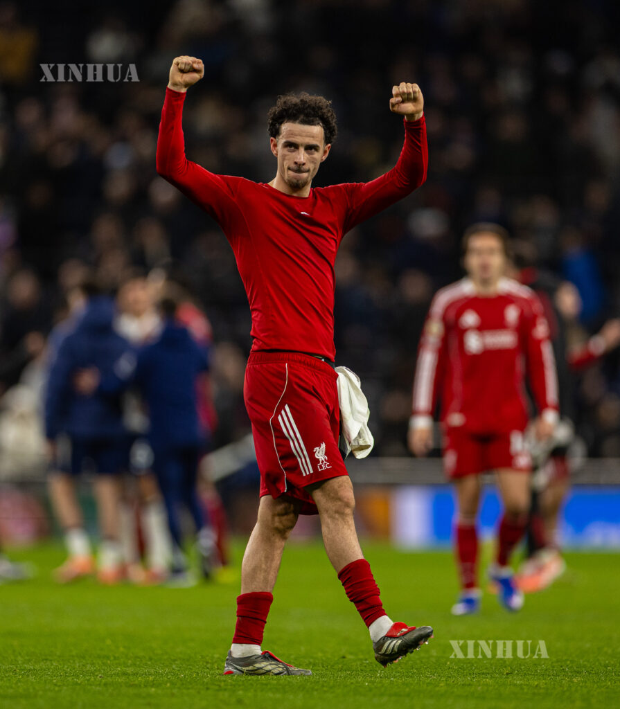 ဗြိတိန်နိုင်ငံ လန်ဒန်မြို့ရှိ တော့တင်ဟမ် ဟော့စပါး အားကစားကွင်း၌ ၂၀၂၅ ခုနှစ် ဒီဇင်ဘာ ၂၀ ရက်က တော့တင်ဟမ် ဟော့စပါးအသင်းနှင့် လီဗာပူးလ်အသင်းတို့ ယှဉ်ပြိုင်ကစားခဲ့သည့် အင်္ဂလိပ် ပရီးမီးယားလိဂ်ပွဲစဉ်အပြီးတွင် လီဗာပူးလ်အသင်းမှ ကာတစ်ဂျုံးစ် အောင်ပွဲခံနေစဉ် (ဆင်ဟွာ)