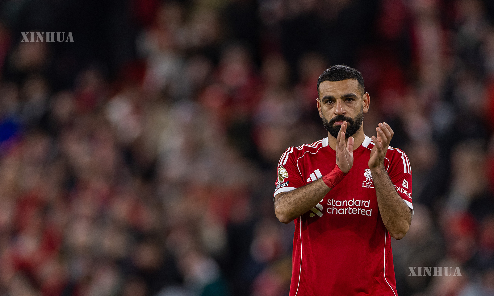 Liverpool’s Mohamed Salah applauds the supporters after the English Premier League match between Liverpool FC and Brighton & Hove Albion FC in Liverpool, Britain, on Dec. 13, 2025.. (Xinhua)