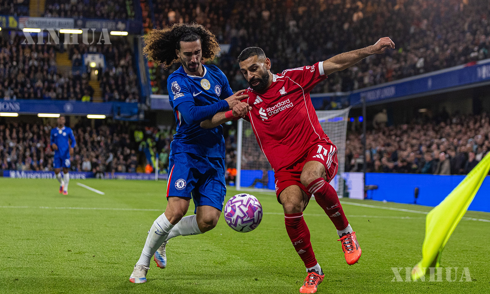ဗြိတိန်နိုင်ငံ လန်ဒန်မြို့တွင် ၂၀၂၅ ခုနှစ် အောက်တိုဘာ ၄ ရက်က ချဲလ်ဆီးအသင်းနှင့် လီဗာပူးလ်အသင်းတို့ ယှဉ်ပြိုင်ကစားသည့် အင်္ဂလိပ်ပရီးမီးယားလိဂ်ပွဲစဉ်၌ ချဲလ်ဆီးအသင်းမှ မာ့ခ် ကူကူရယ်လာ (ဝဲ) နှင့် လီဗာပူးလ်အသင်းမှ မိုဟာမက် ဆာလာတို့ ရင်ဆိုင်တွေ့နေစဉ် (ဆင်ဟွာ)