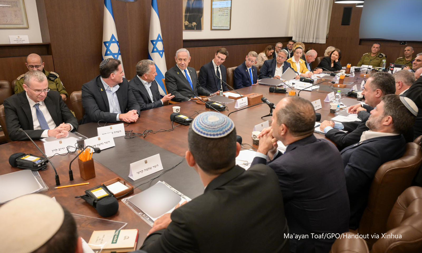图说:这是10月9日在耶路撒冷拍摄的以色列内阁会议现场。新华社发(以色列政府新闻办公室供图)