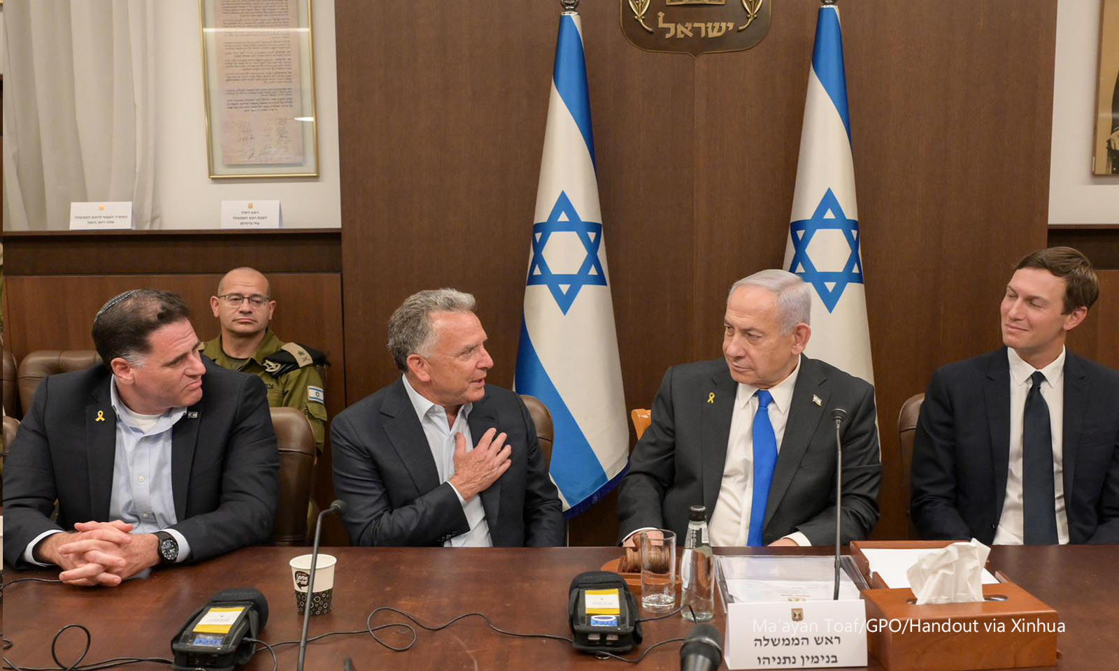 图说:这是10月9日在耶路撒冷拍摄的以色列内阁会议现场。新华社发(以色列政府新闻办公室供图)