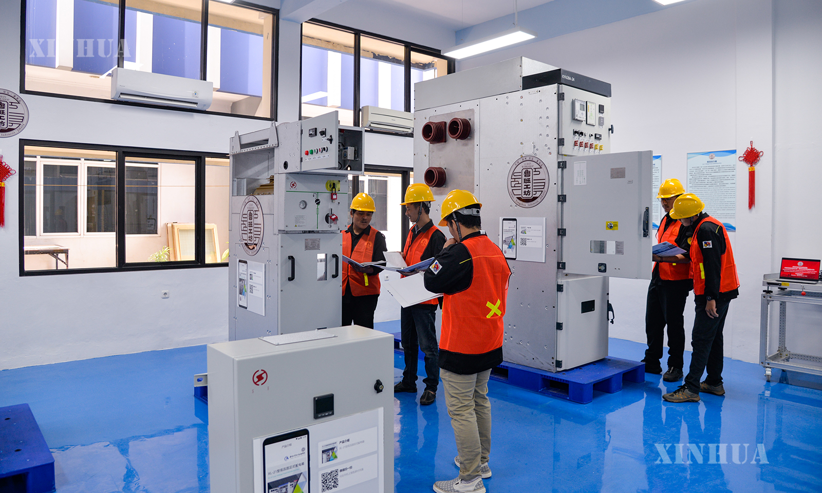 အင်ဒိုနီးရှားနိုင်ငံ တောင်ဆူမတြားပြည်နယ် Muara Enim ခရိုင်ရှိ Huadian (Indonesia) Boya power generation ကုမ္ပဏီ စုပေါင်းထိန်းချုပ်ခန်းတွင် တရုတ်-အင်ဒိုနီးရှား ဝန်ထမ်းများ အလုပ် လုပ်ကိုင်နေသည်ကို ၂၀၂၅ ခုနှစ် အောက်တိုဘာ ၃ ရက်က တွေ့ရစဉ် (ဆင်ဟွာ)