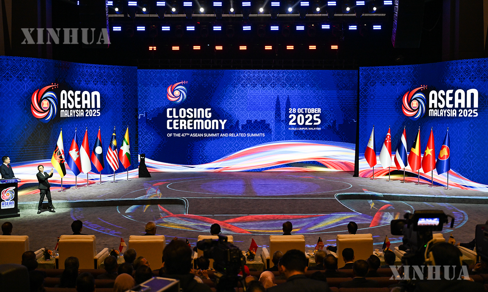 图说1:这是10月28日在马来西亚吉隆坡拍摄的第47届东盟峰会及系列会议闭幕式现场。新华社记者 程一恒 摄