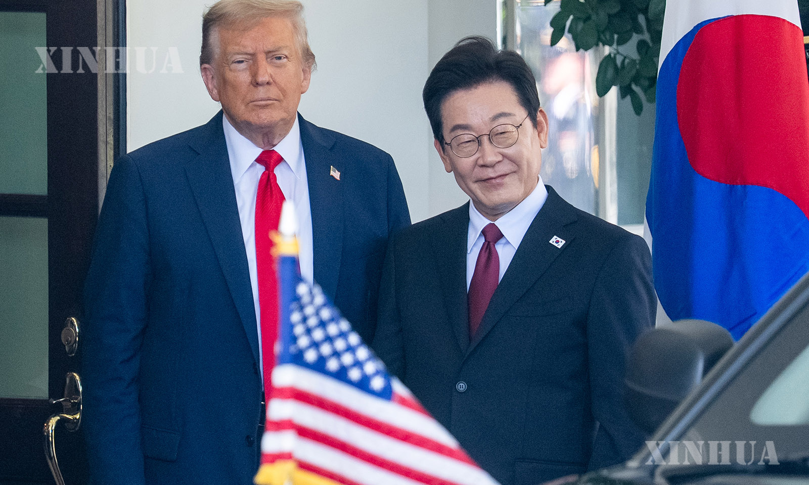 图说:8月25日,美国总统特朗普(左)在华盛顿白宫欢迎韩国总统李在明。新华社记者 胡友松 摄
