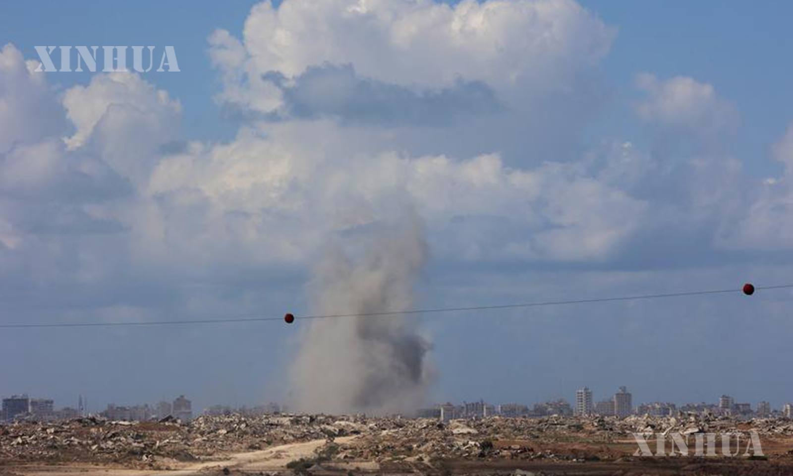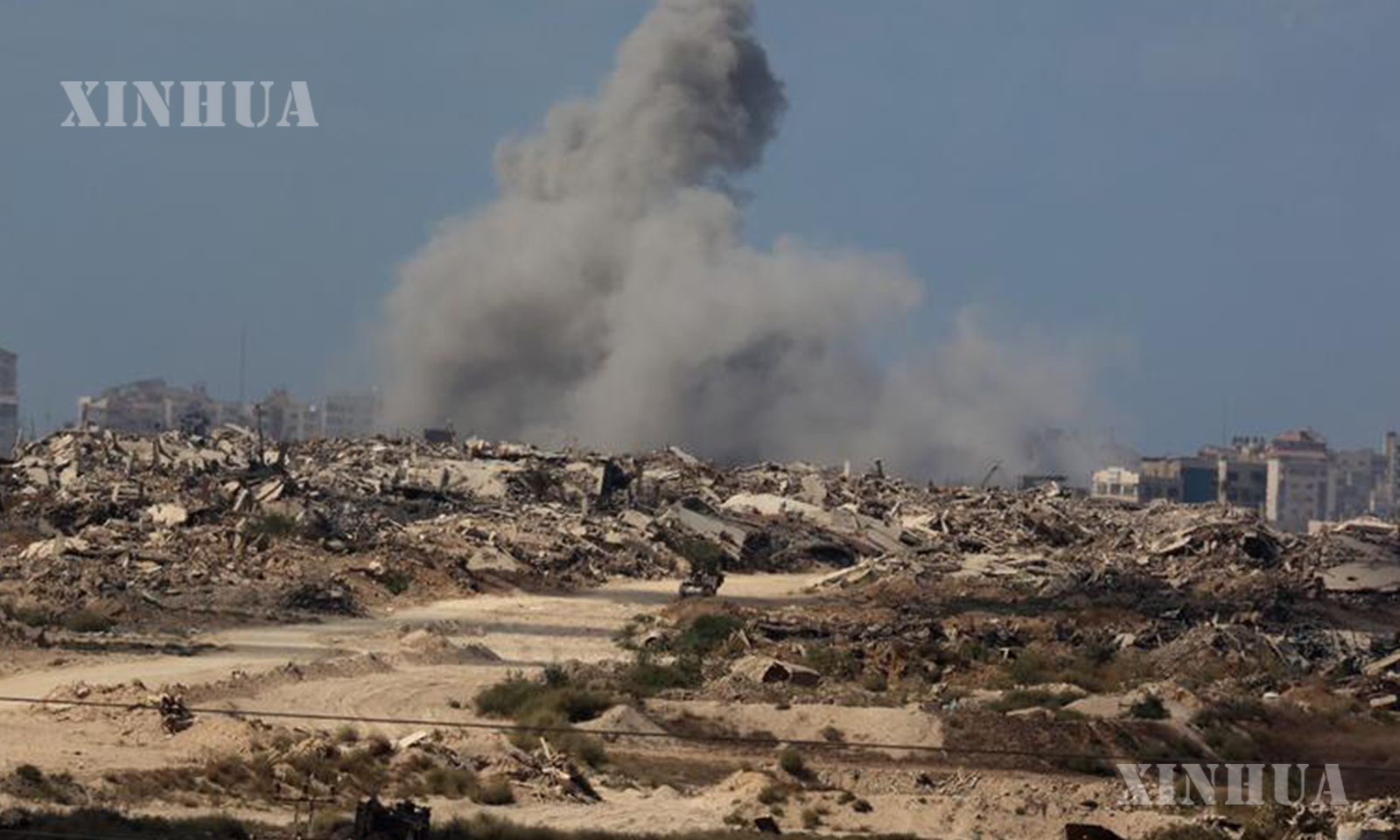 ဂါဇာမြို့ တိုက်ခိုက်ခံရပြီးနောက် မီးခိုးများ အပေါ်သို့တက်လာသည်ကို ၂၀၂၅ ခုနှစ် စက်တင်ဘာ ၃၀ ရက်က တွေ့ရစဉ် (ဆင်ဟွာ)