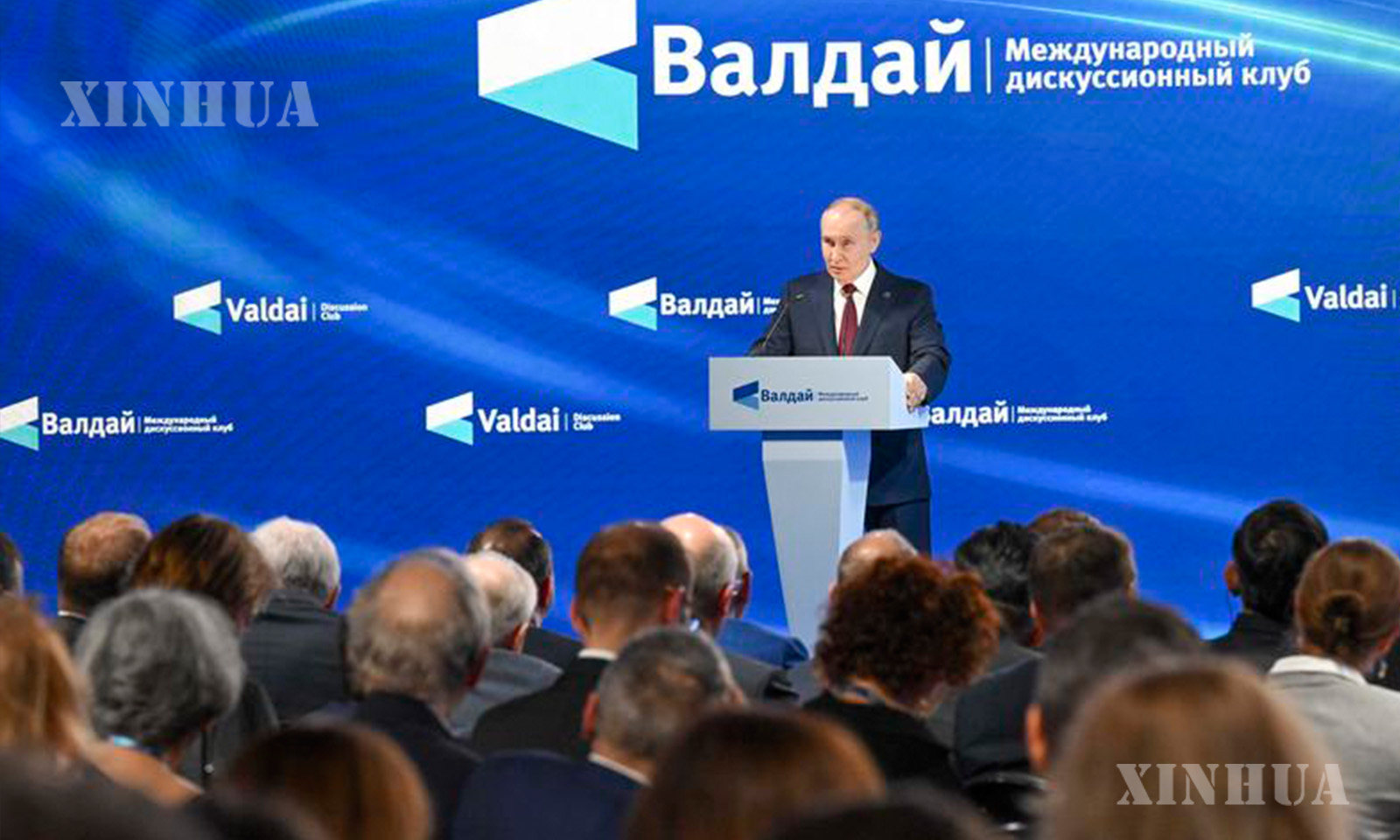 1. 10月2日,在俄罗斯索契,俄罗斯总统普京出席俄智库瓦尔代国际辩论俱乐部第22届年会全体会议并发表讲话。新华社记者 郝建伟 摄