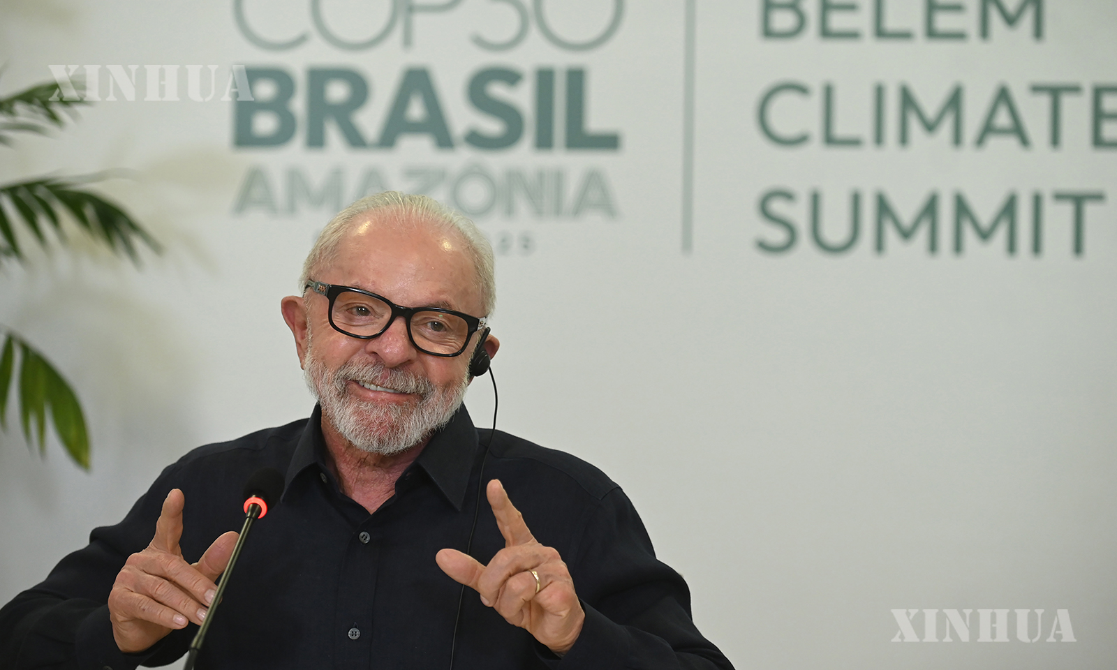 图说:11月4日,巴西总统卢拉在帕拉州首府贝伦接受媒体采访。新华社发(卢西奥·塔沃拉摄)