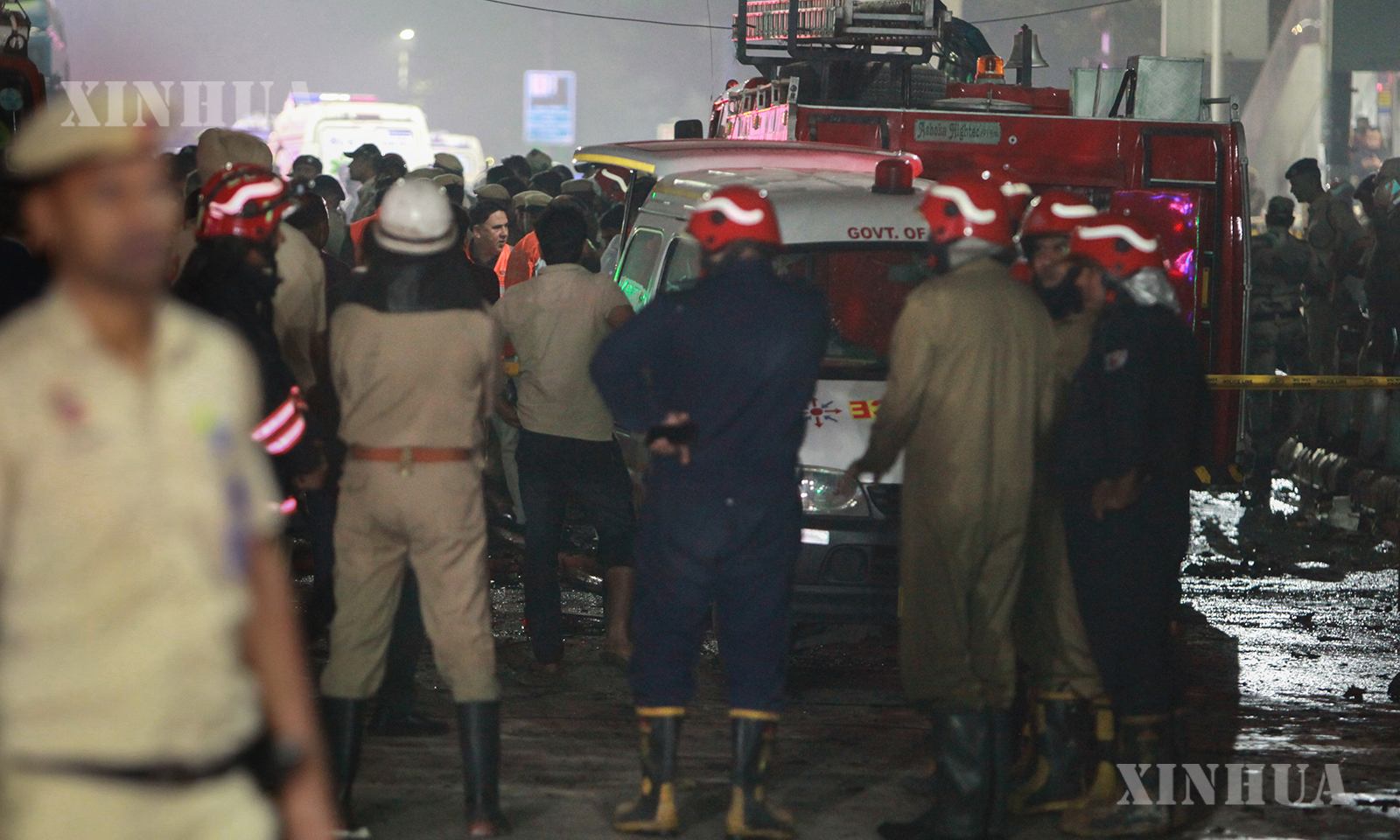 အိန္ဒိယနိုင်ငံ မြို့တော်နယူးဒေလီတွင် မော်တော်ကားပေါက်ကွဲမှု ဖြစ်ပွားရာနေရာ အနီးနားတွင် ရဲတပ်ဖွဲ့နှင့် မီးသတ်သမားများ စုဝေးနေကြသည်ကို နိုဝင်ဘာ ၁၀ ရက်က တွေ့ရစဉ် (ဆင်ဟွာ)