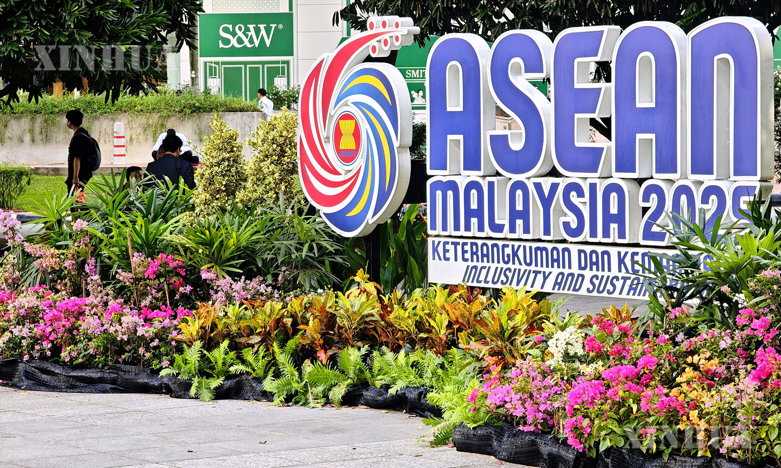 图说:这是10月26日在马来西亚首都吉隆坡街头拍摄的东盟峰会标识。新华社记者 邢广利 摄
