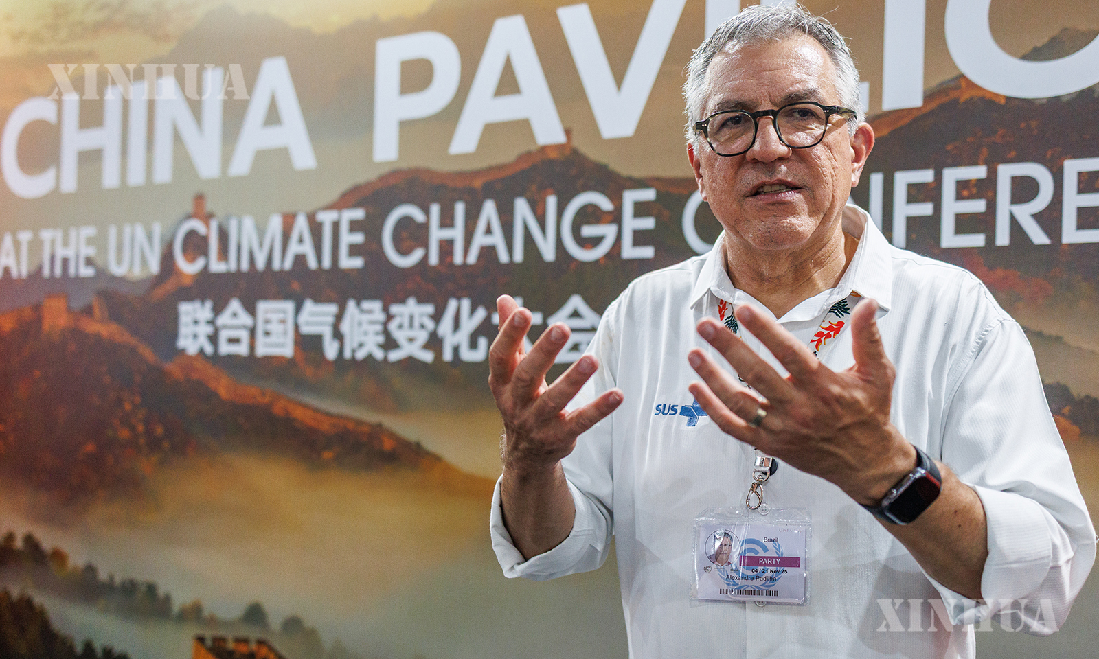 图说:11月14日,在巴西贝伦举行的《联合国气候变化框架公约》第三十次缔约方大会(COP30)上,巴西卫生部长帕迪利亚接受新华社记者采访。 新华社发(克劳迪娅·马尔提尼摄)