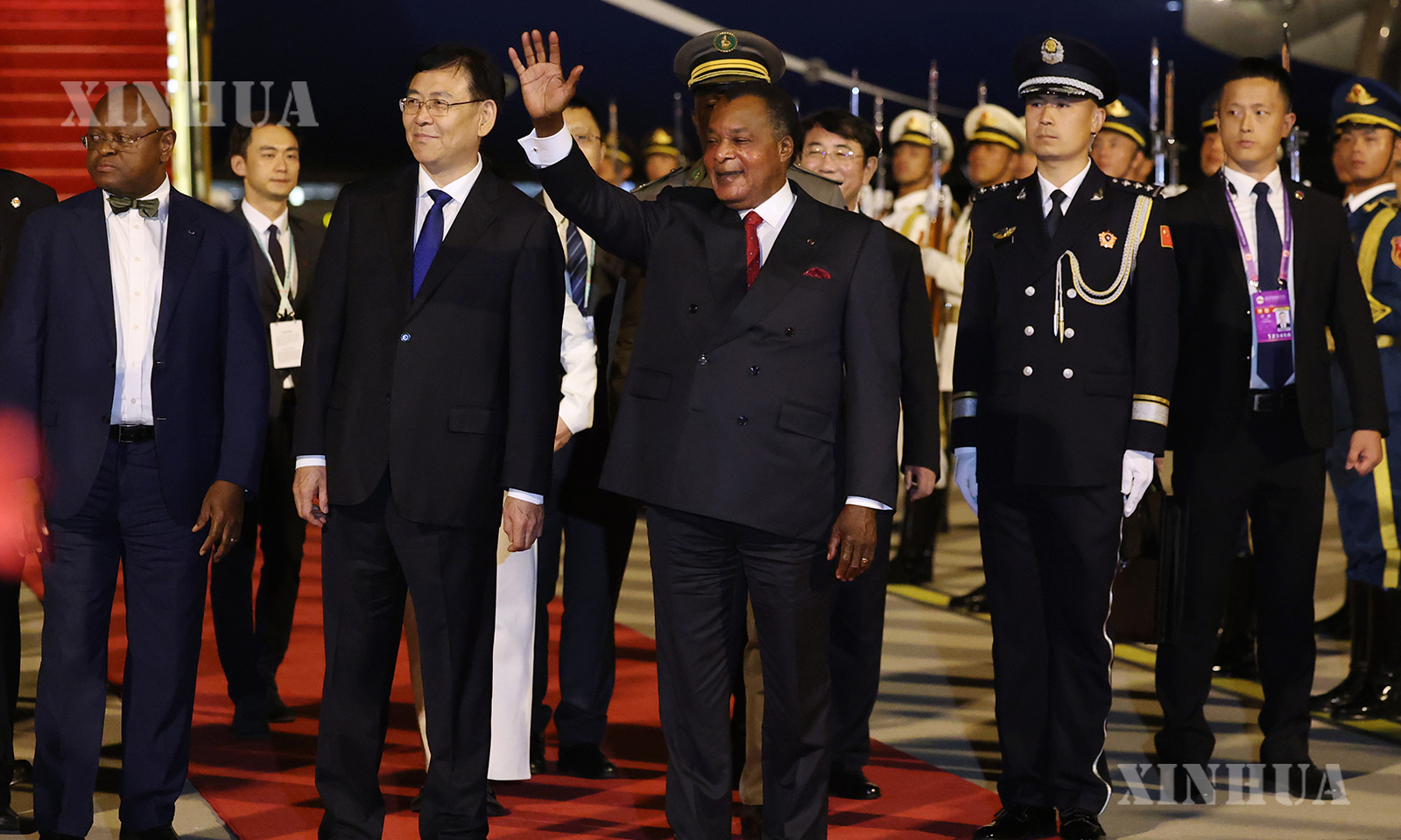 图说1、9月2日,来华出席中国人民抗日战争暨世界反法西斯战争胜利80周年纪念活动的刚果(布)总统萨苏抵达北京。 新华社记者 张晨霖 摄