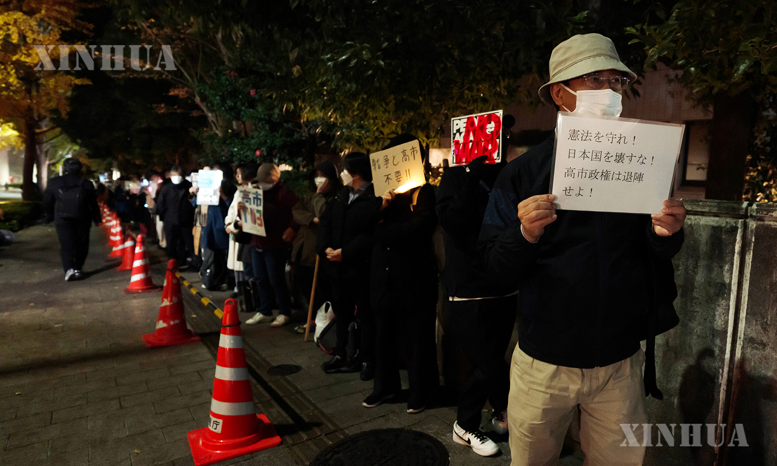 新华社东京11月28日电(记者陈泽安 杨智翔)针对日本首相高市早苗近期发表涉台错误言论,且时至今日仍不思悔改,日本民众28日晚在位于东京的首相官邸前再度举行抗议集会,要求高市撤回相关言论。