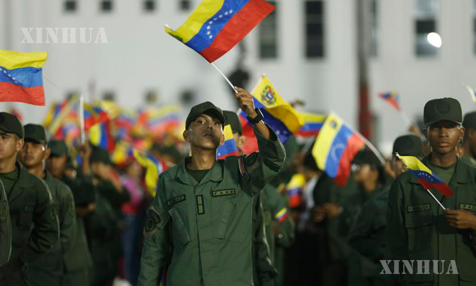 ဗင်နီဇွဲလားနိုင်ငံ မြို့တော် ကရာကတ်စ်၌ ကျင်းပသော ဆန္ဒပြလှုပ်ရှားမှုတွင် ပါဝင်သော ဗင်နီဇွဲလား ဘိုလီးဗာရီးယားနာ အမျိုးသားလက်နက်ကိုင်တပ်ဖွဲ့ အဖွဲ့ဝင်များကို ၂၀၂၅ ခုနှစ် နိုဝင်ဘာ ၂၅ ရက်က တွေ့ရစဉ် (ဆင်ဟွာ)