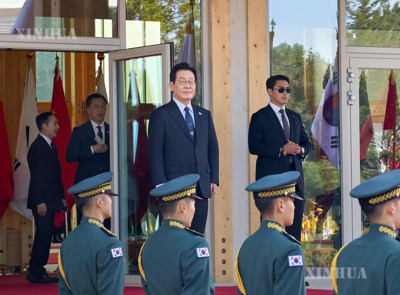 1. 11月1日,韩国总统李在明在欢迎仪式现场。 当地时间11月1日下午,国家主席习近平出席韩国总统李在明举行的欢迎仪式。 新华社记者 李琰 摄