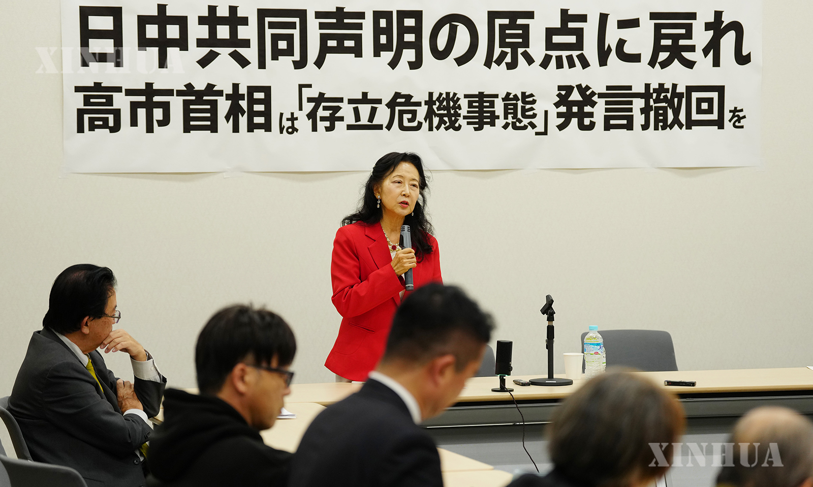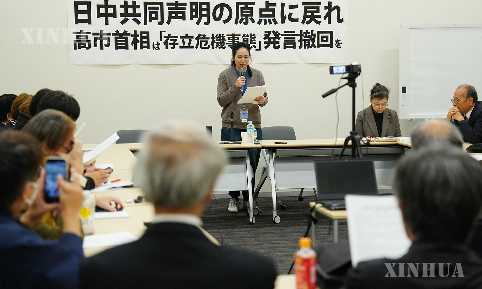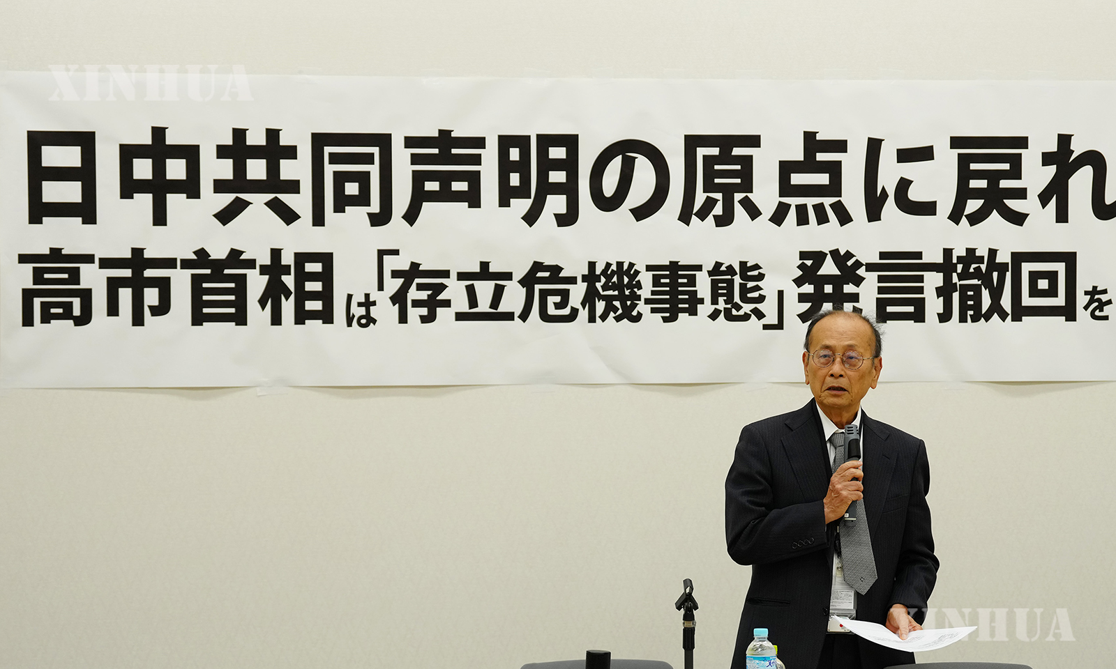 ဂျပန်နိုင်ငံ လွှတ်တော်အမတ်၊ ပညာရှင်များစွာက ဒီဇင်ဘာ ၂ ရက် ညပိုင်းတွင် ဂျပန်နိုင်ငံ တိုကျိုမြို့ရှိ ဂျပန်အထက်လွှတ်တော်အမတ်များခန်းမ၌ စုဝေးကာ ထိုင်ဝမ်နှင့်စပ်လျဉ်းသည့် မှားယွင်းသော ပြောဆိုချက်အား ဂျပန်ဝန်ကြီးချုပ် ဆာနာအဲ တာကာအိချိ ရုပ်သိမ်းရန် တိုက်တွန်းခဲ့ကြသည်။ စုဝေးပွဲ၏ အကြောင်းအရာခေါင်းစဉ်မှာ “ဂျပန်-တရုတ် ဆက်ဆံရေး ပုံမှန်အခြေအနေ စမှတ်သို့ ပြန်လည်ရောက်ရှိရန်အတွက် ဝန်ကြီးချုပ် ဆာနာအဲ တာကာအိချိမှ ‘သေရေးရှင်ရေးအကျပ်အတည်း အခြေအနေ’ ဟူသည့် သက်ဆိုင်ရာ ပြောဆိုချက်အား ရုပ်သိမ်းရန် တောင်းဆိုခြင်း” ဖြစ်ကြောင်း သိရသည်။ (Xinhua)