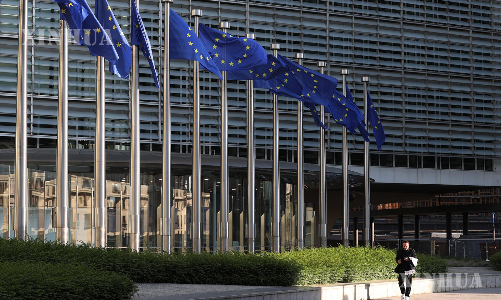 图说:5月23日,在比利时布鲁塞尔,一名男子从欧盟总部大楼外经过。新华社记者赵丁喆摄