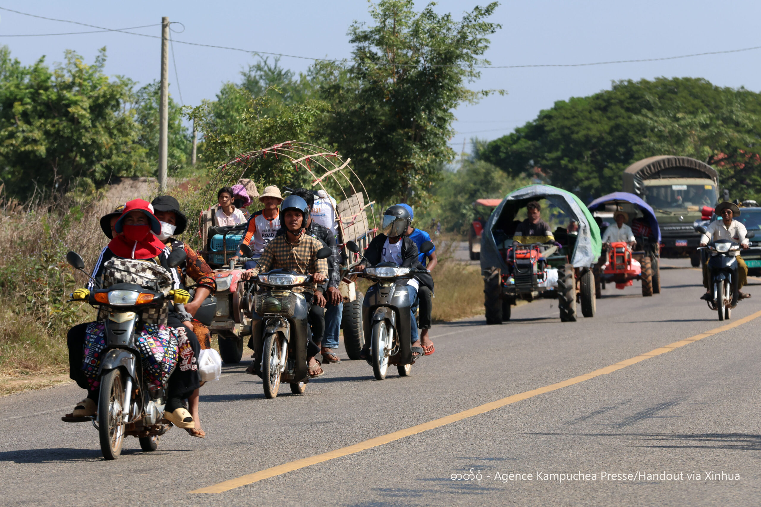 图说1:这是12月9日在柬埔寨暹粒省拍摄的逃离边境的居民。新华社/柬新社
