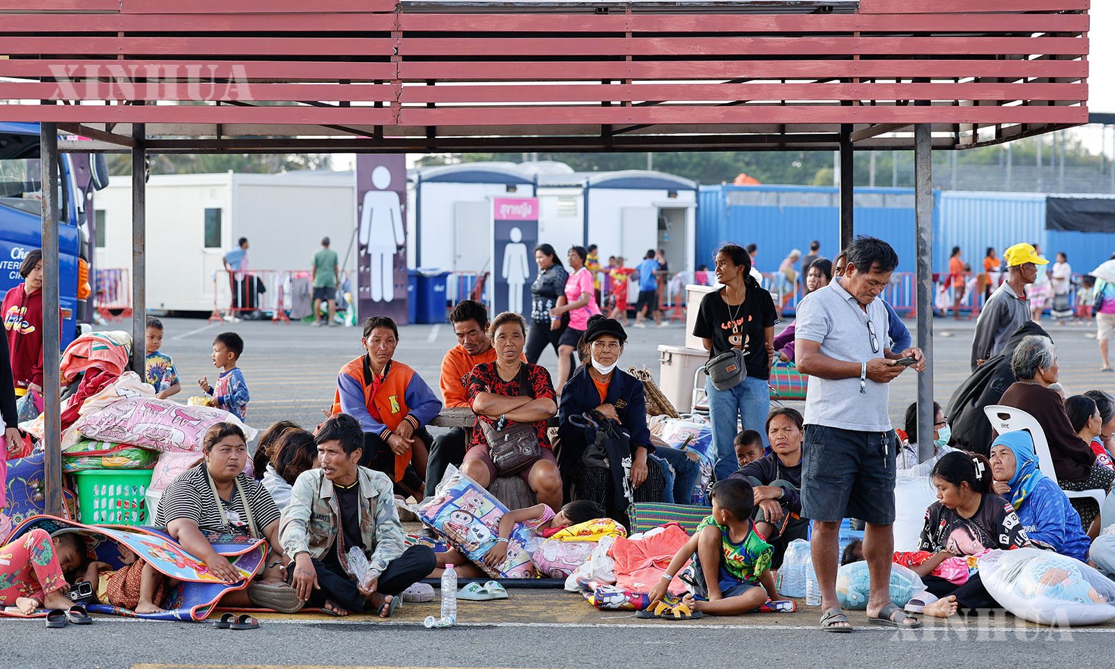 图说:12月8日,在泰国武里南府,撤离边境省份的民众来到一处避难所。新华社发