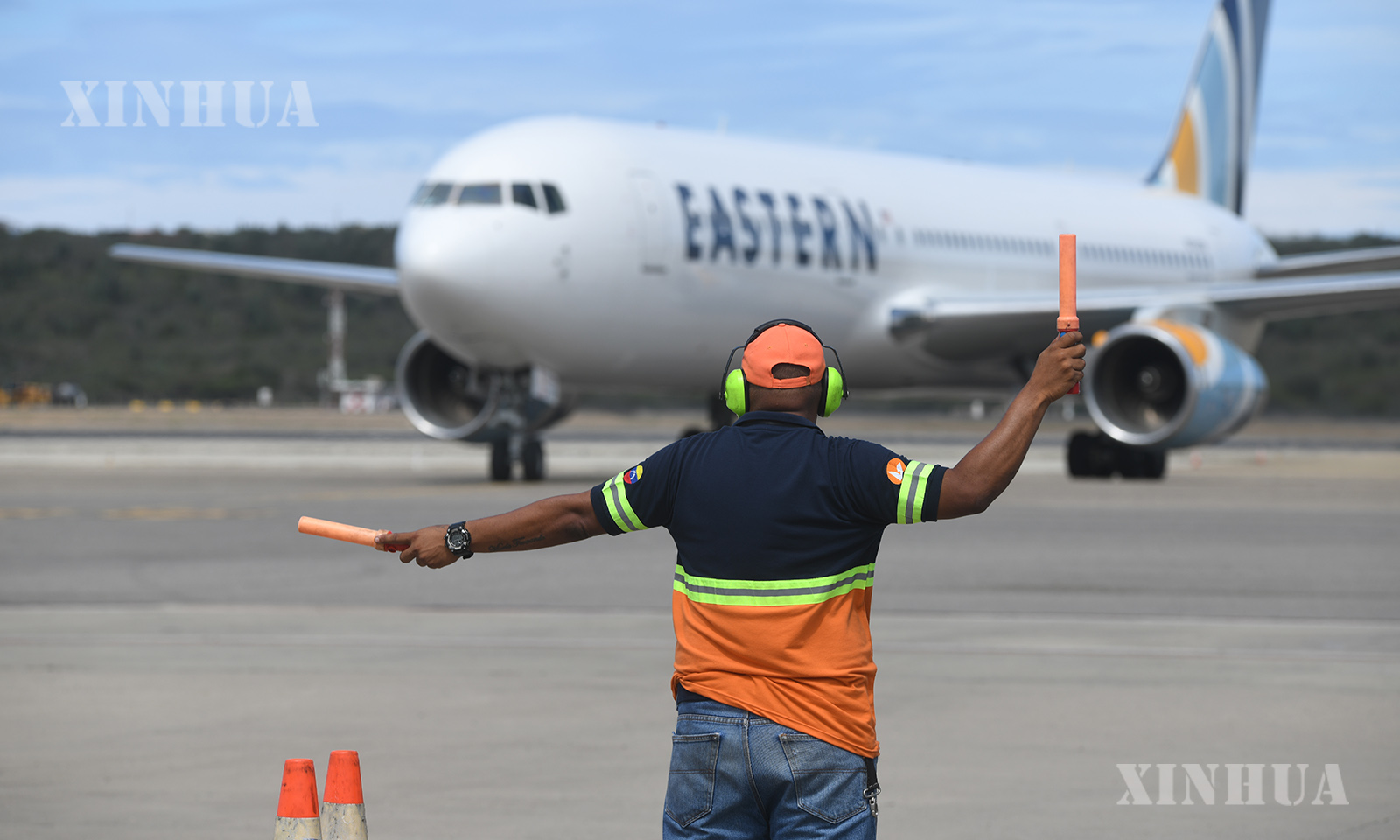 图说:11月26日,一架载有被美国遣返的委内瑞拉移民的飞机抵达委内瑞拉迈克蒂亚西蒙·玻利瓦尔国际机场。新华社发(马科斯·萨尔加多摄)