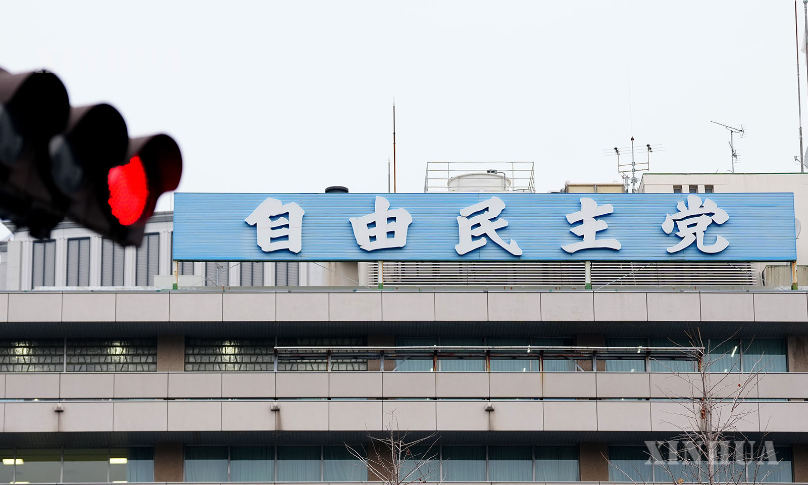 图说:12月25日,民众在日本东京的自民党总部大楼前参加抗议活动。新华社记者 贾浩成 摄