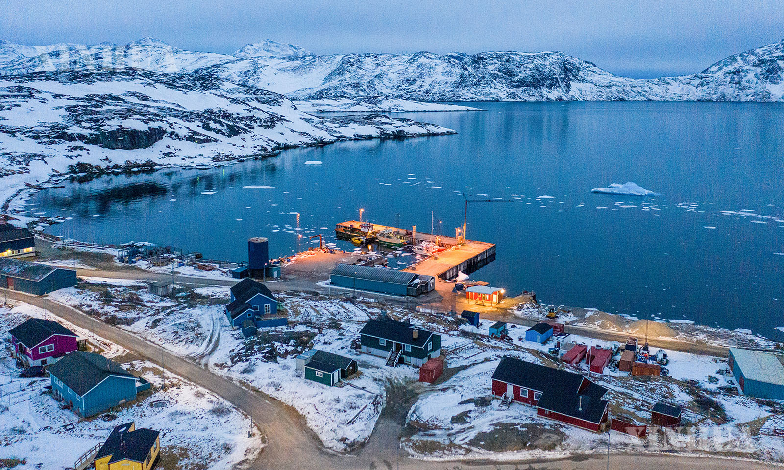 1. 这是2025年3月21日拍摄的丹麦自治领地格陵兰岛纳尔萨克镇的码头(无人机照片)。新华社记者彭子洋摄