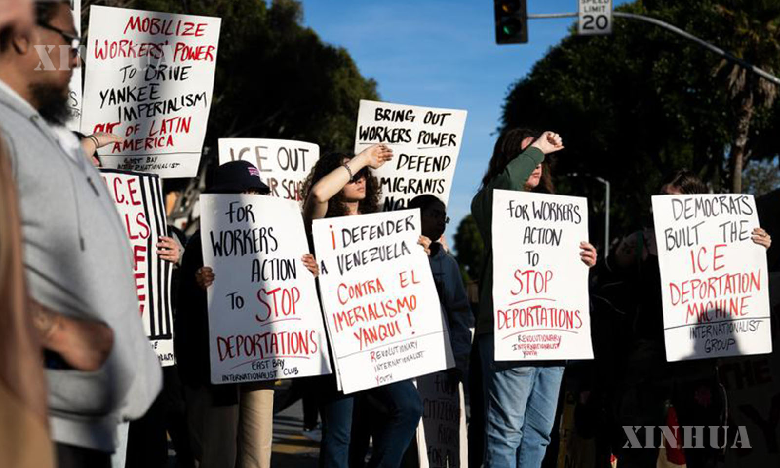 အမေရိကန်နိုင်ငံ ကယ်လီဖိုးနီးယားပြည်နယ် ဆန်ဖရန်စစ္စကိုမြို့တွင် ဆန္ဒပြနေသူများအား ၂၀၂၆ ခုနှစ် ဇန်နဝါရီ ၁၀ ရက်က တွေ့ရစဉ် (ဆင်ဟွာ)