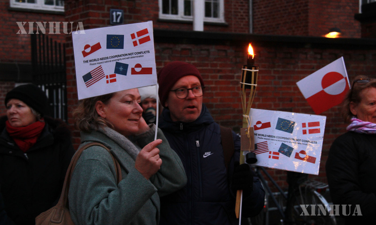 ဒိန်းမတ်နိုင်ငံ၊ ကိုပင်ဟေဂင်မြို့တွင် ဂရင်းလန်းကျွန်းဆိုင်ရာ အမေရိကန်၏ အစီအစဉ်များကို ဆန့်ကျင်ဆန္ဒပြနေသူများအား ၂၀၂၆ ခုနှစ်၊ ဇန်နဝါရီလ ၁၄ ရက်က တွေ့ရစဉ် (ဆင်ဟွာ)