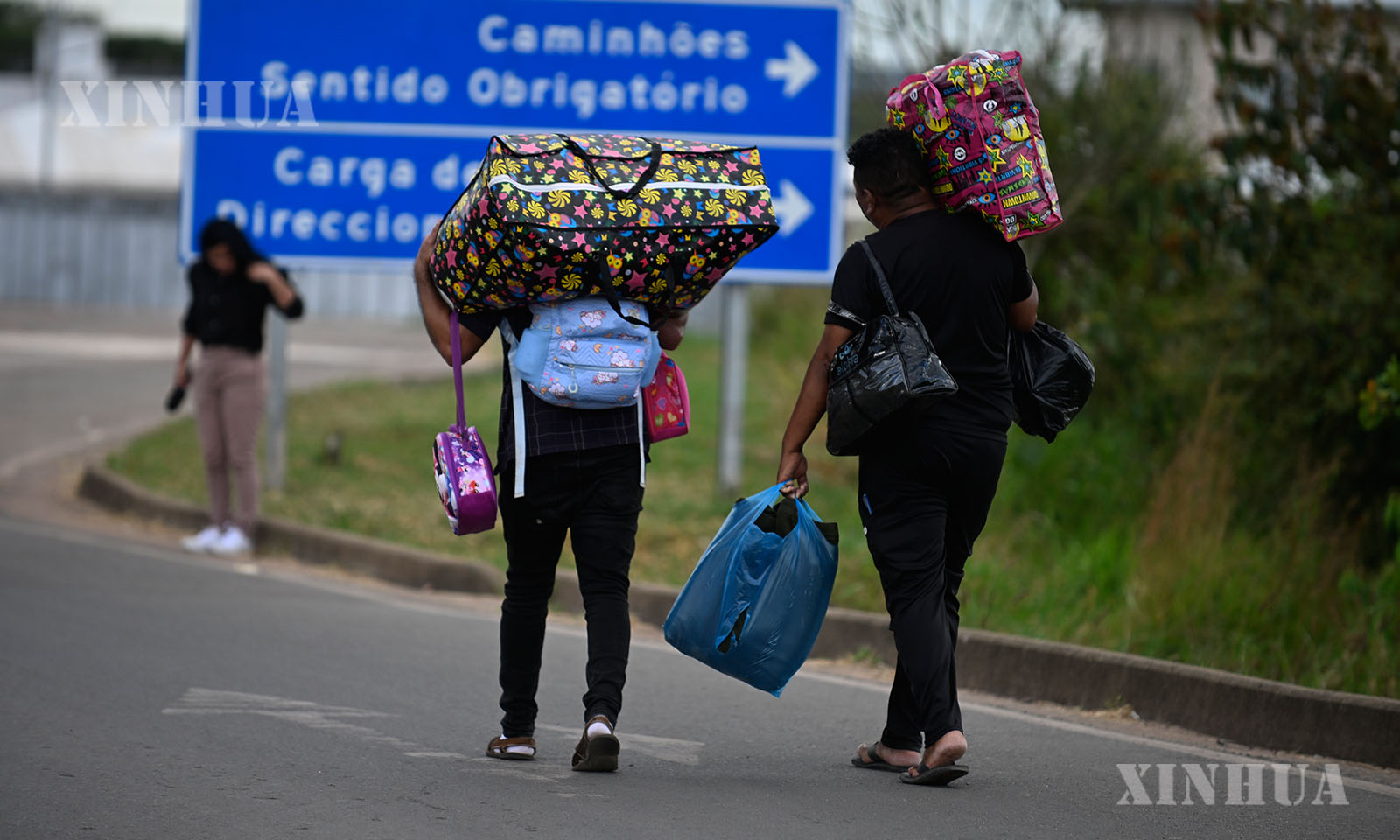 ဘရာဇီးနိုင်ငံ မြောက်ပိုင်း Roraima ပြည်နယ် Pacaraima မြို့တွင် ဗင်နီဇွဲလားမှ ရွှေ့ပြောင်းနေထိုင်သူများ ဘရားဇီးနိုင်ငံသို့ ဝင်ရောက်ပြီးနောက် အမြန်လမ်းတွင် လမ်းလျှောက်နေကြသည်ကို ၂၀၂၆ ခုနှစ် ဇန်နဝါရီ ၆ ရက်က တွေ့ရစဉ် (ဆင်ဟွာ)