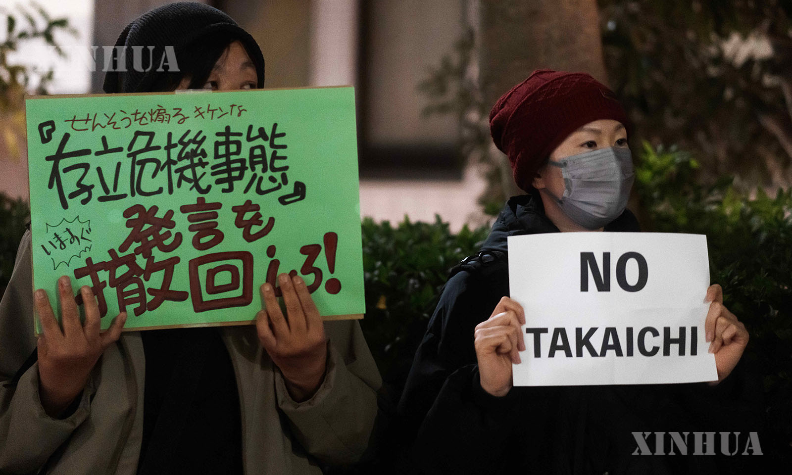 图说2:2025年11月28日,民众在日本东京的首相官邸外参加抗议活动。新华社记者 贾浩成 摄
