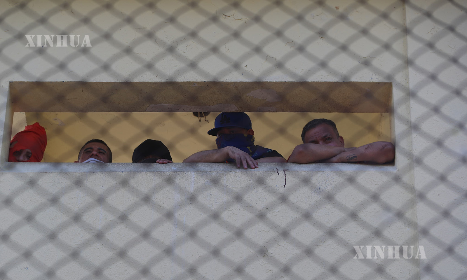 图说2:1月17日,囚犯在危地马拉弗赖哈内斯一所监狱查看骚乱情况。新华社发