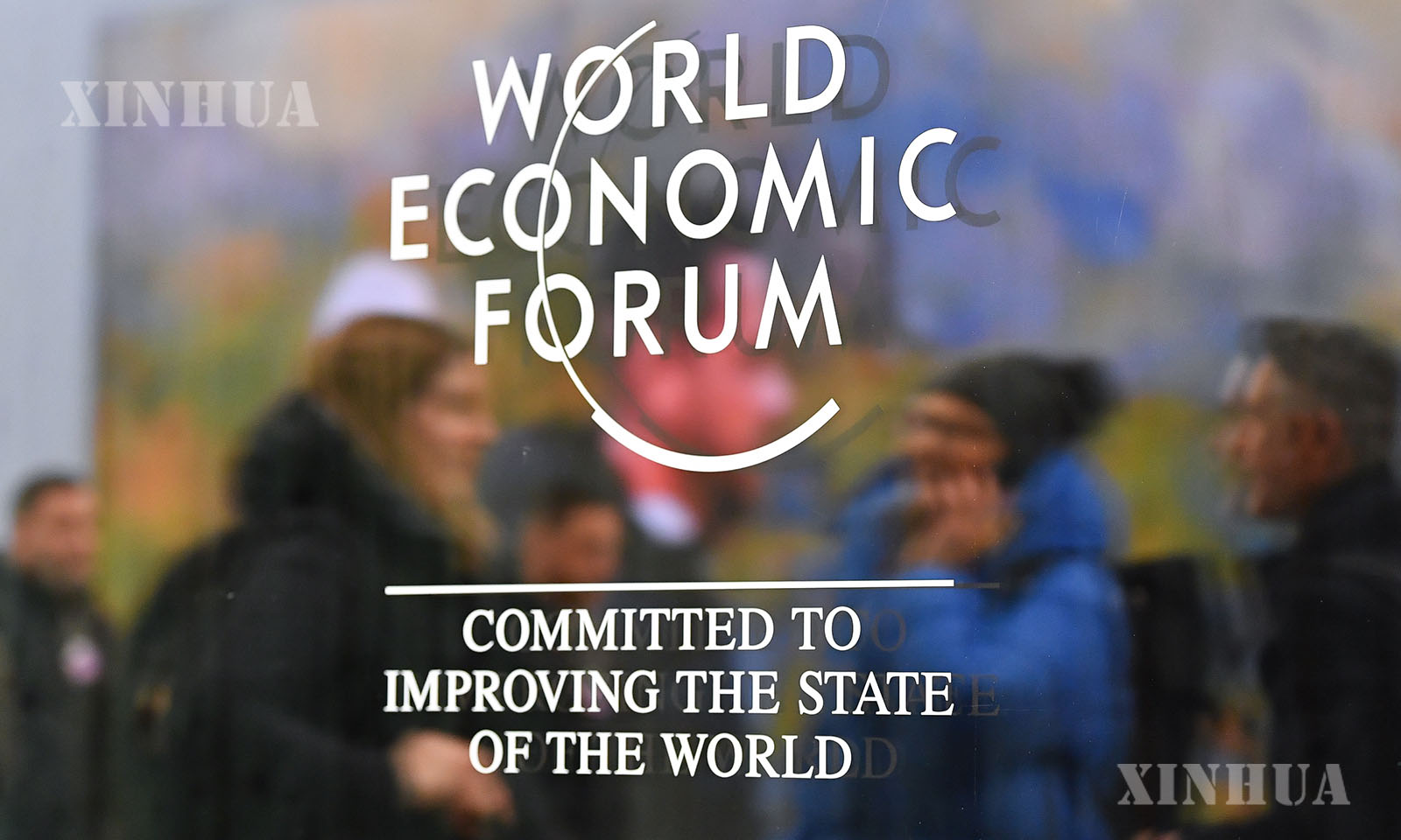 ဆွစ်ဇာလန်နိုင်ငံ ဒါဗို့စ်မြို့တွင် ကမ္ဘာ့စီးပွားရေးဖိုရမ် အမှတ်တံဆိပ်အား ၂၀၂၆ ခုနှစ် ဇန်နဝါရီ ၁၈ ရက်က တွေ့ရစဉ် (ဆင်ဟွာ)