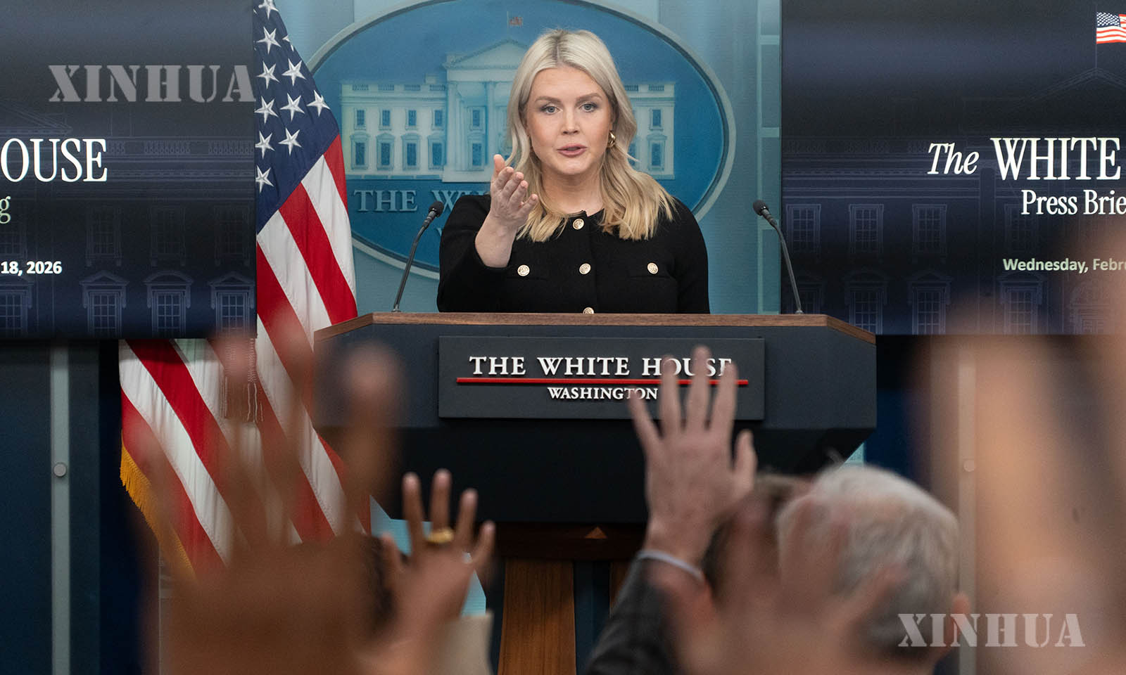 图说1:2月18日,在美国首都华盛顿,白宫新闻秘书莱维特出席记者会。新华社发(李源清摄)