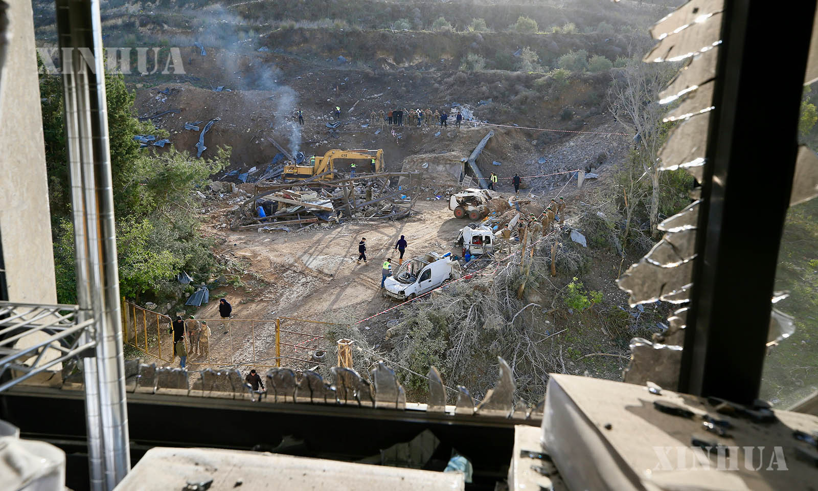 图说:1月25日,在黎巴嫩奈拜提耶省宾特朱拜勒,士兵和救援人员查看空袭现场。新华社发(阿里·哈希绍摄)
