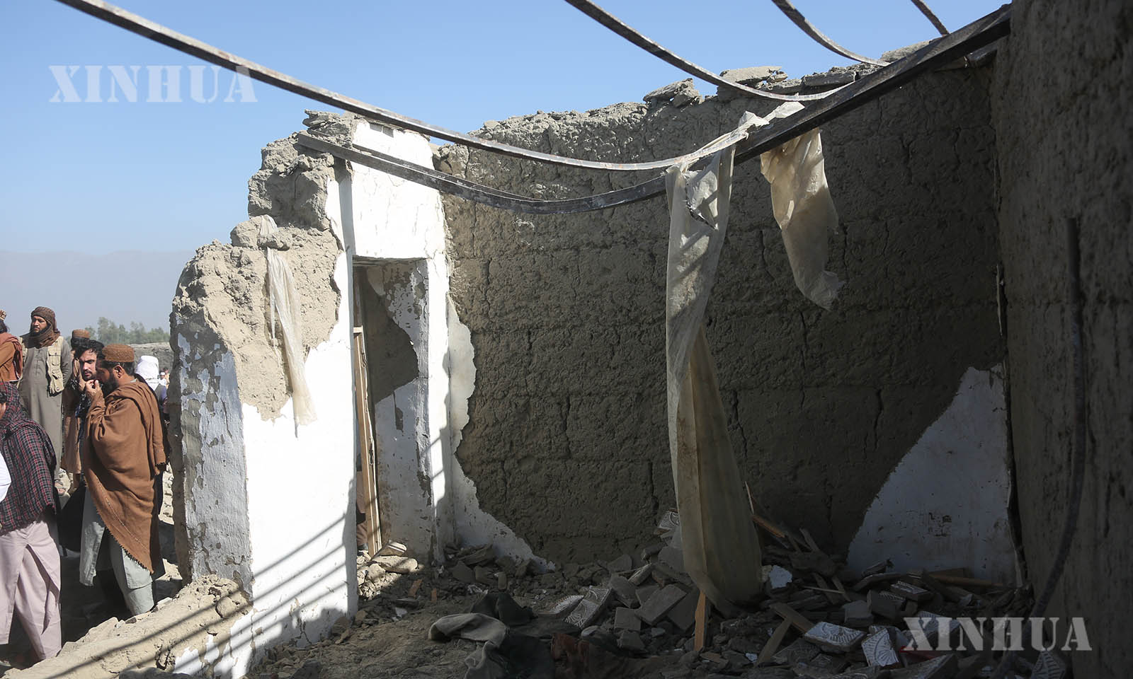 图说1:2月22日,在阿富汗东部楠格哈尔省,当地居民聚集在遭空袭的民居旁。新华社发(塞夫拉赫曼·萨菲摄)