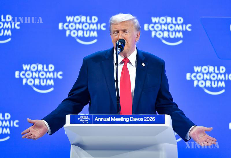 1. 1月21日,美国总统特朗普在瑞士达沃斯举行的世界经济论坛2026年年会发表演讲。 新华社记者 连漪 摄