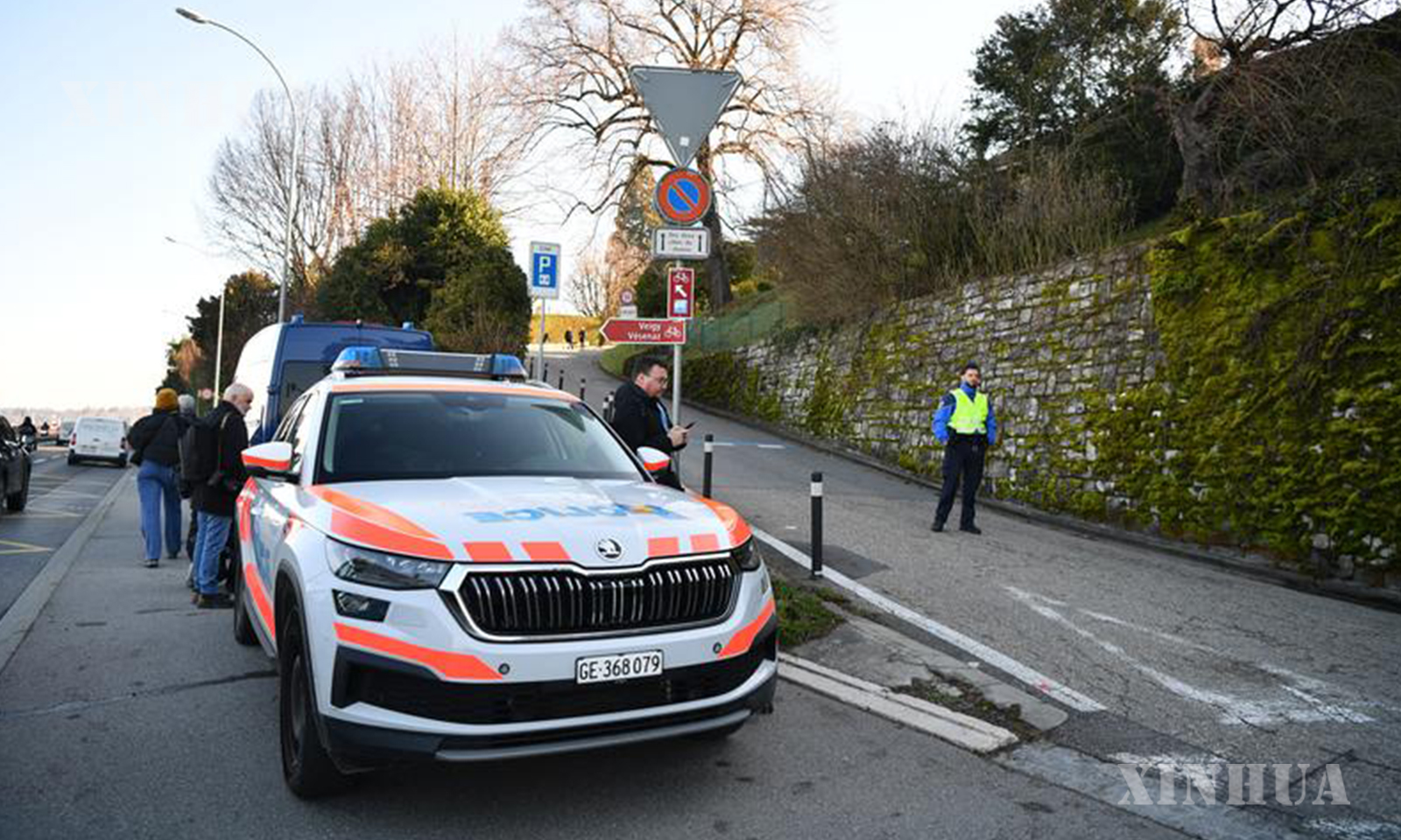ဆွစ်ဇာလန်နိုင်ငံ ဂျီနီဗာမြို့ရှိ အိုမန်နိုင်ငံ သံတမန်ကိုယ်စားလှယ်ရုံးအနီးတွင် ရပ်နားထားသော ရဲကားအား ၂၀၂၆ ခုနှစ် ဖေဖော်ဝါရီ ၂၆ ရက်က တွေ့ရစဉ် (ဆင်ဟွာ)