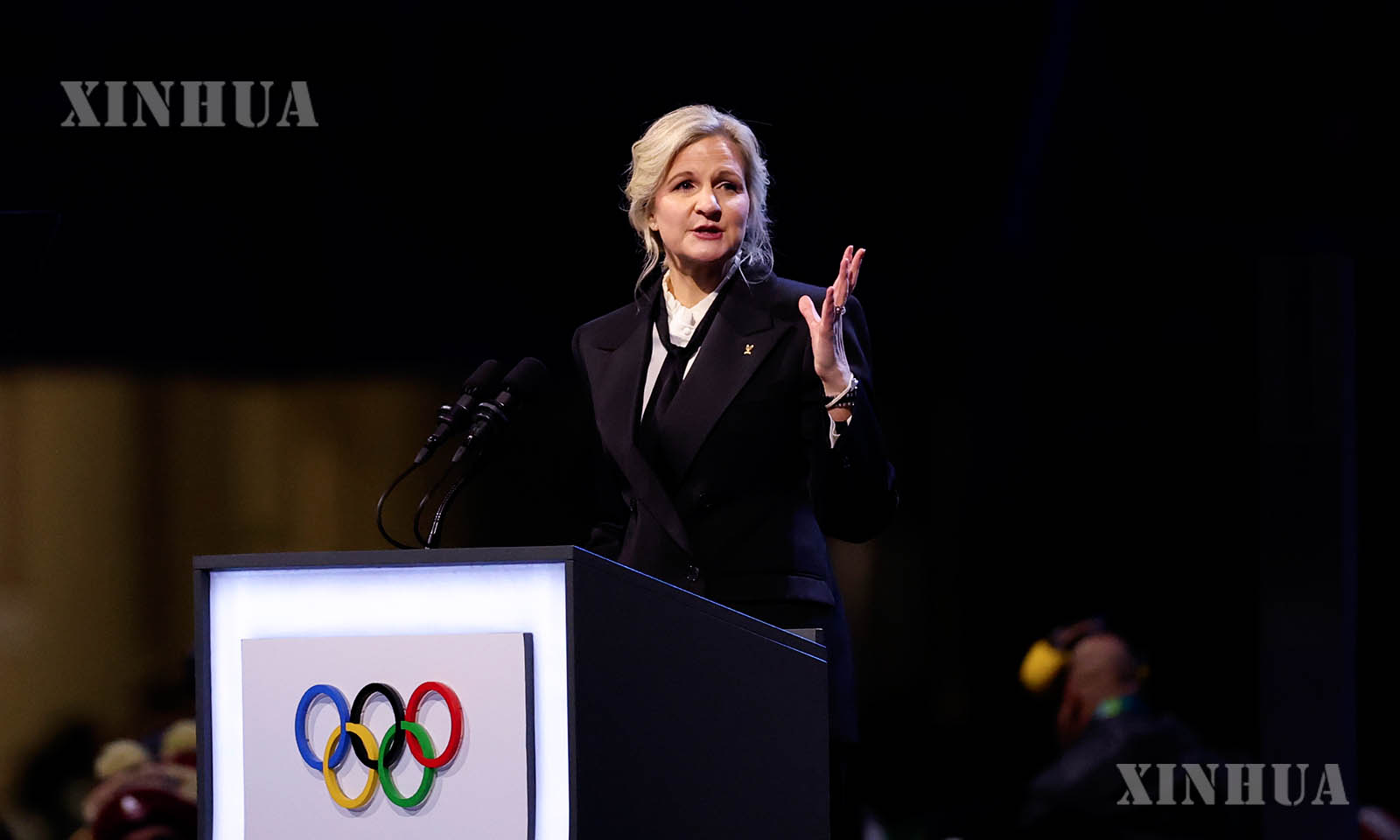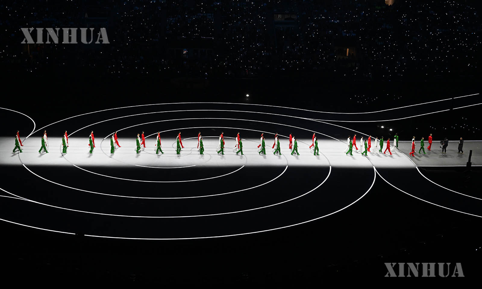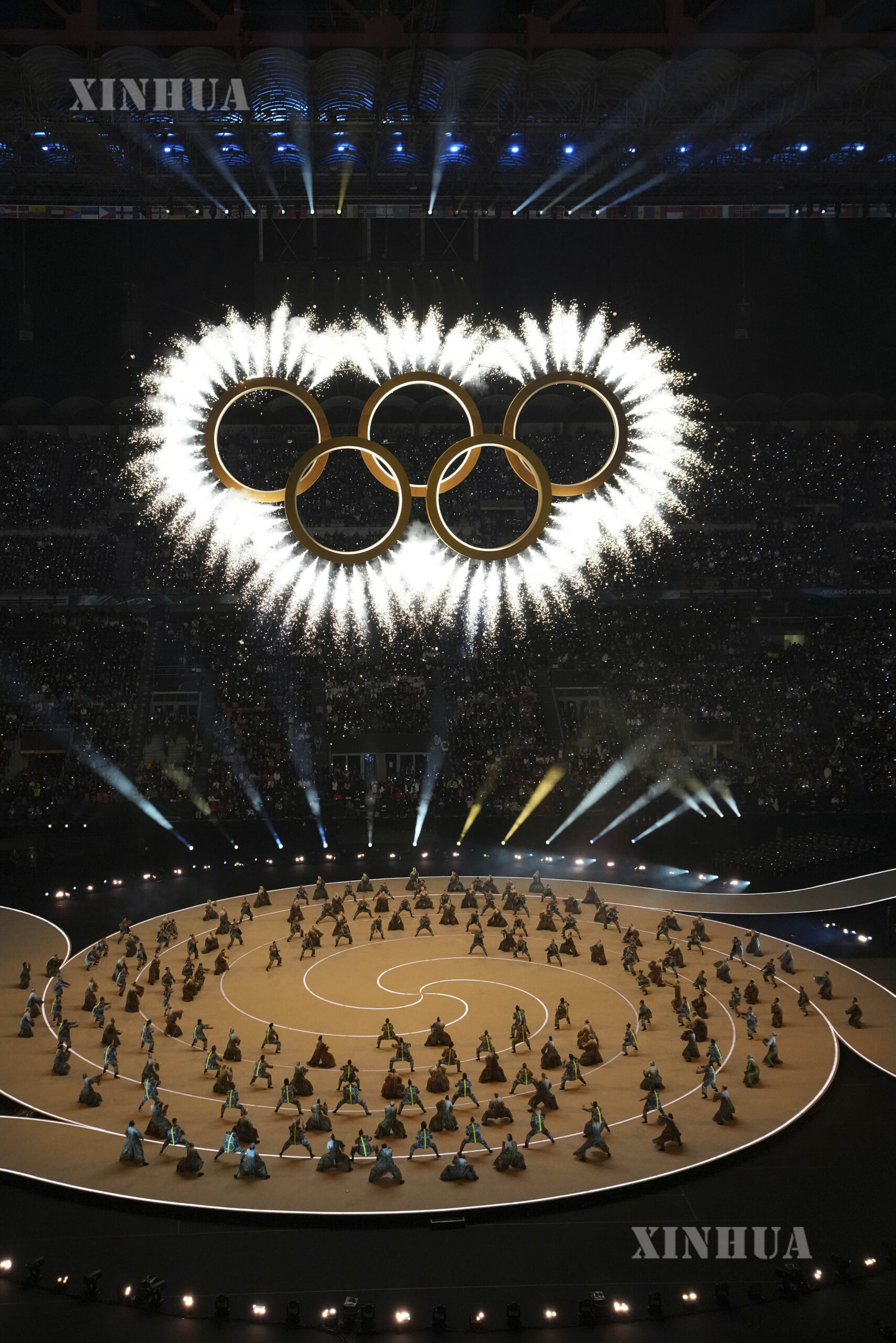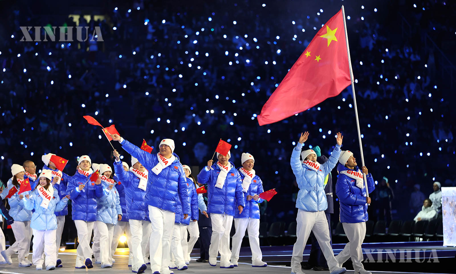 အီတလီနိုင်ငံ မီလန်မြို့၌ကျင်းပသော အိုလံပစ် ဆောင်းရာသီအားကစားပွဲ ဖွင့်ပွဲအခမ်းအနားတွင် အလံလွှင့်ထူအခမ်းအနားကို ၂၀၂၆ ခုနှစ် ဖေဖော်ဝါရီလ ၆ ရက်က တွေ့ရစဉ် (ဆင်ဟွာ)
