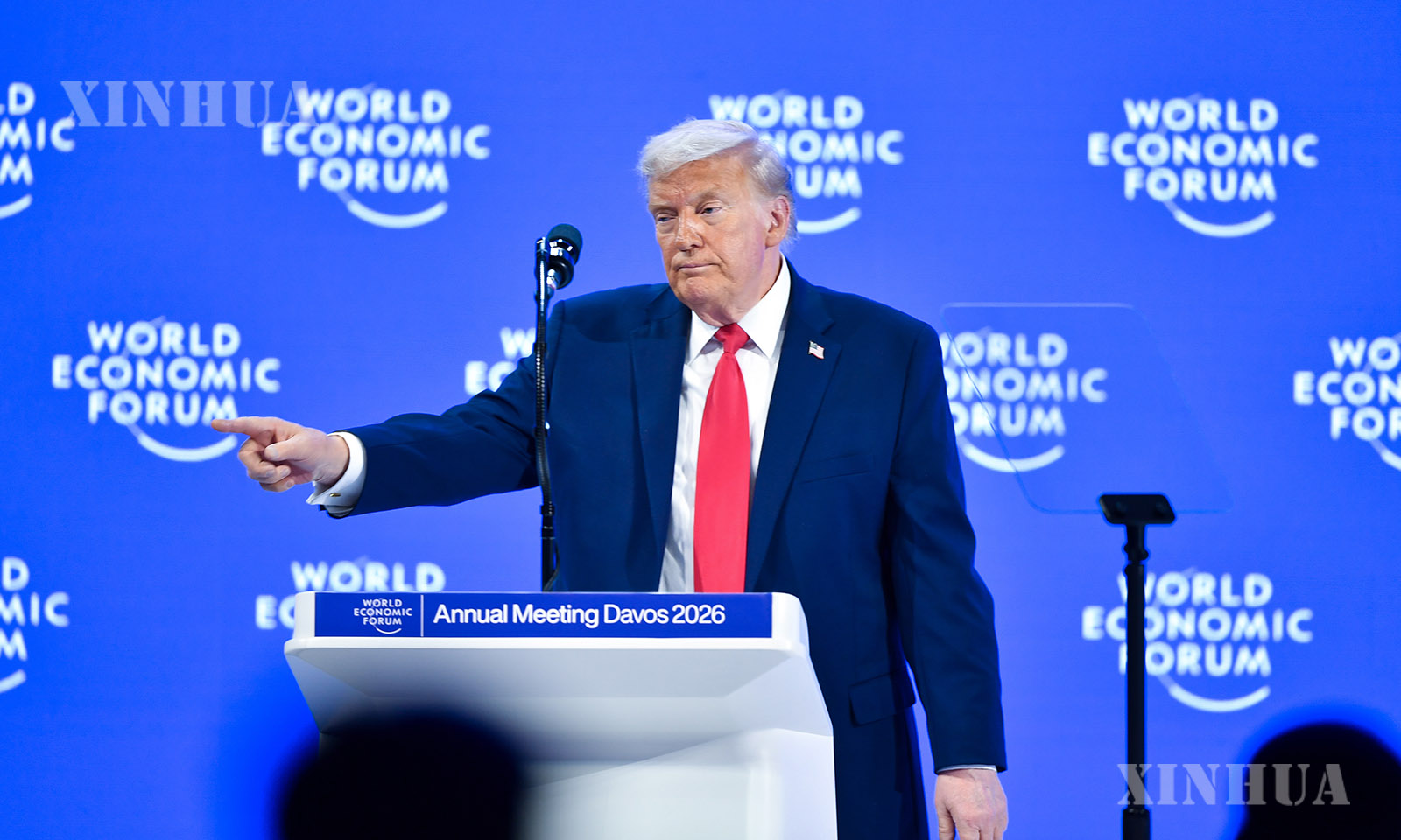 图说:1月21日,美国总统特朗普在瑞士达沃斯举行的世界经济论坛2026年年会发表演讲。 新华社记者 连漪 摄