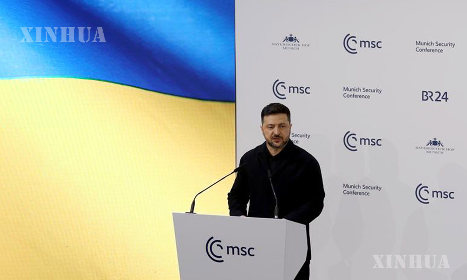 1. 2月14日,在德国慕尼黑,乌克兰总统泽连斯基在慕尼黑安全会议上发表讲话。新华社记者 李颖 摄